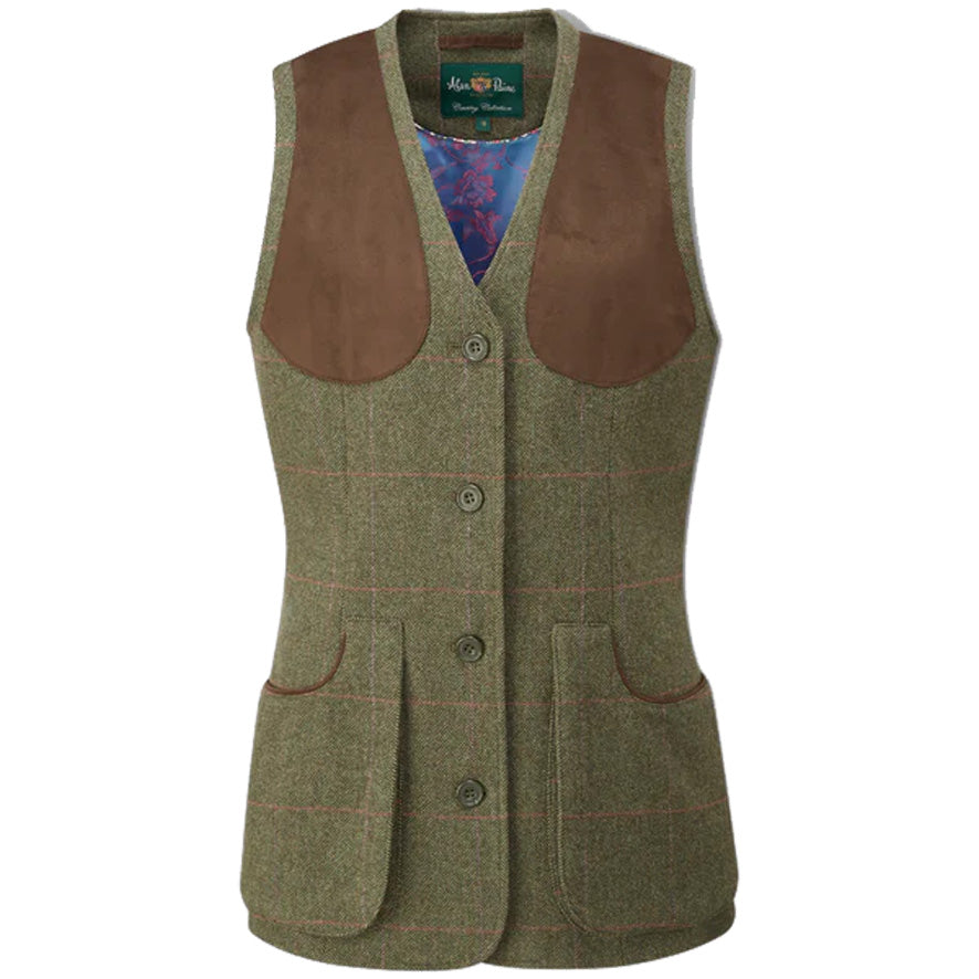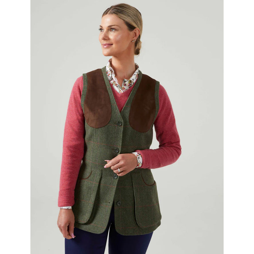 This classically designed technical ladies’ shooting waistcoat in the striking Lotus colourway is a new addition to the ladies’ Combrook collection. It is made of 100% pure wool tweed and has a finish that repels water.