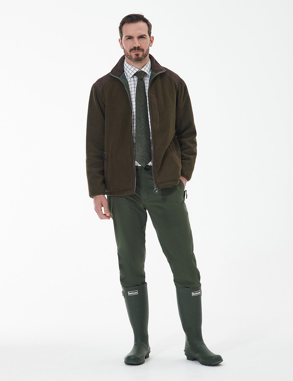 This long sleeve fleece jacket is ready for all your adventures with its stand collar and zip-through fastening. Made with super-soft material and genuine leather trims, this jacket also features country-inspired microfibre shoulder patches and multiple pockets for practicality.