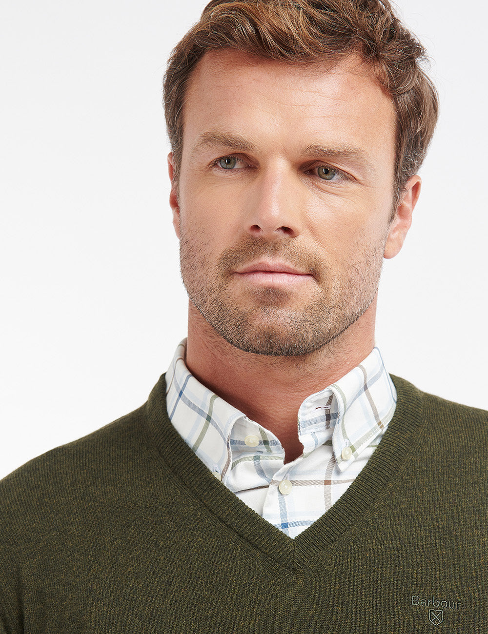This?classic jumper is crafted from pure lambswool for premium comfort. Featuring rib stitch detailing to the hem and cuffs for a comfortable fit, and tonal Barbour embroidery to the sleeve, this fine gauge knit ensures a flattering, relaxed fit.