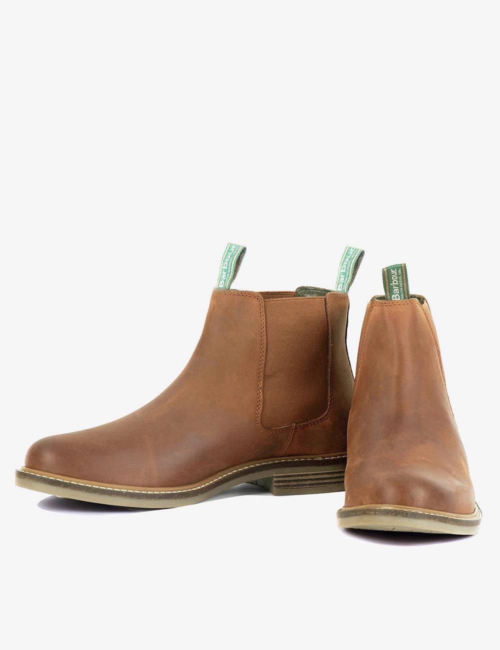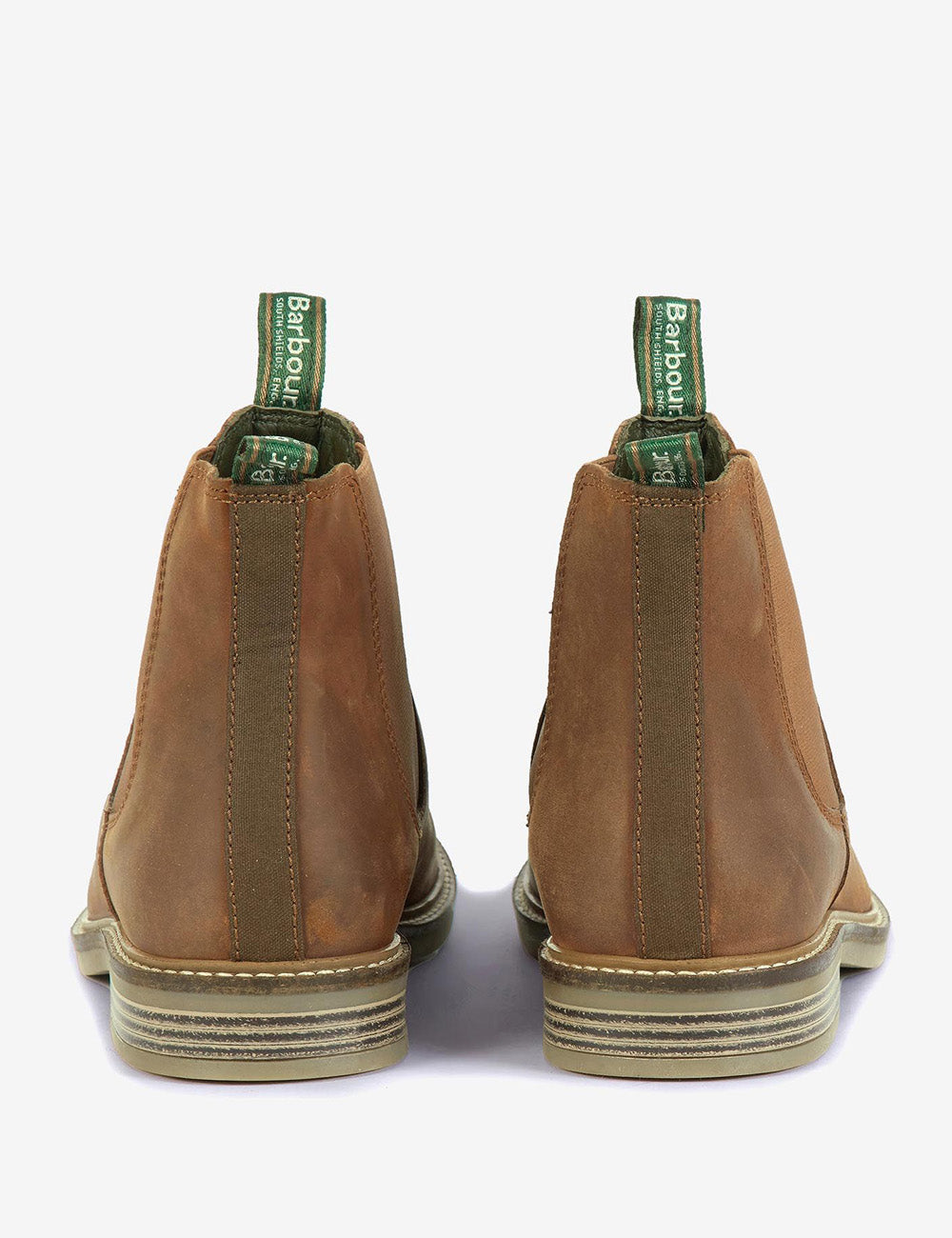 Crafted with a canvas back strap detail and Barbour branded pull tags, these boots feature a Chelsea boot inspired design for a stylish look. Plus, a walking man outsole provides superior comfort and durability.