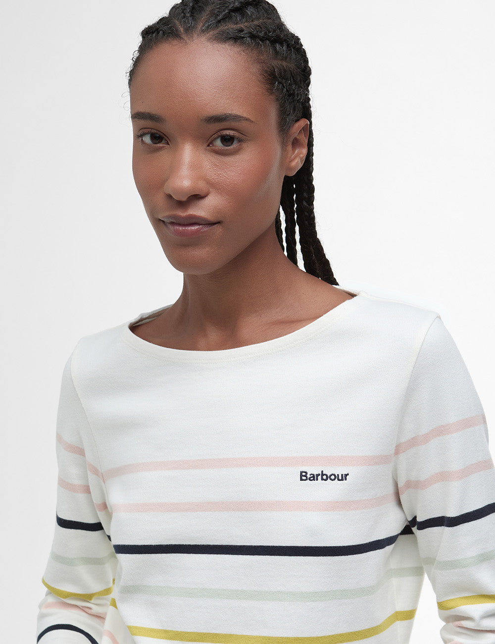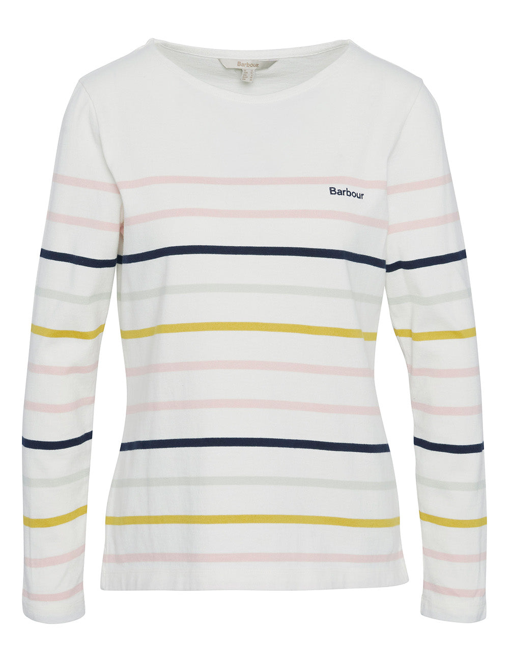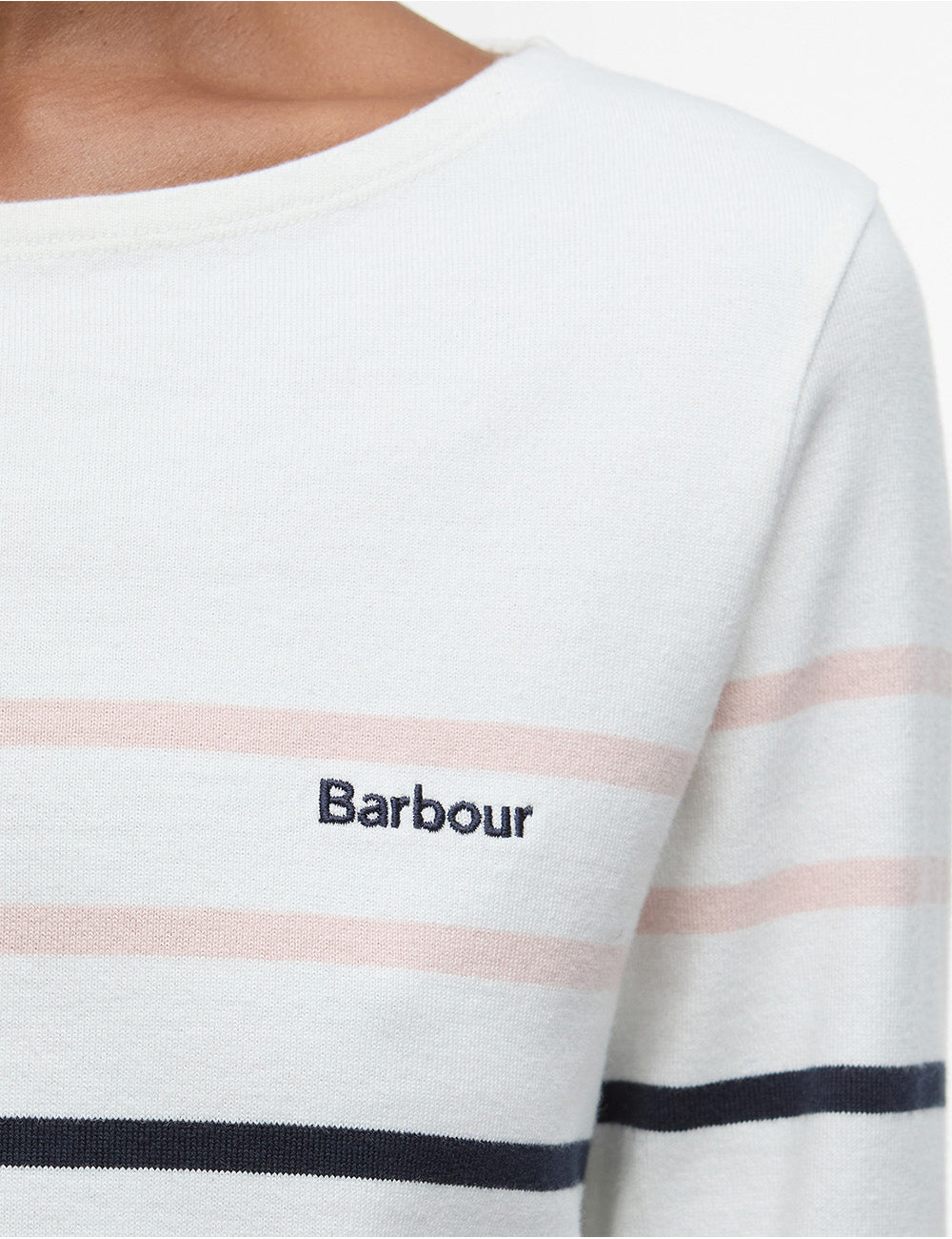 Bring effortless style to your weekend wardrobe with the Hawkins Top. Crafted from pure cotton, this garment boasts a round neck, long sleeves and stripe detailing. Finished with classic Barbour script embroidery to the chest.