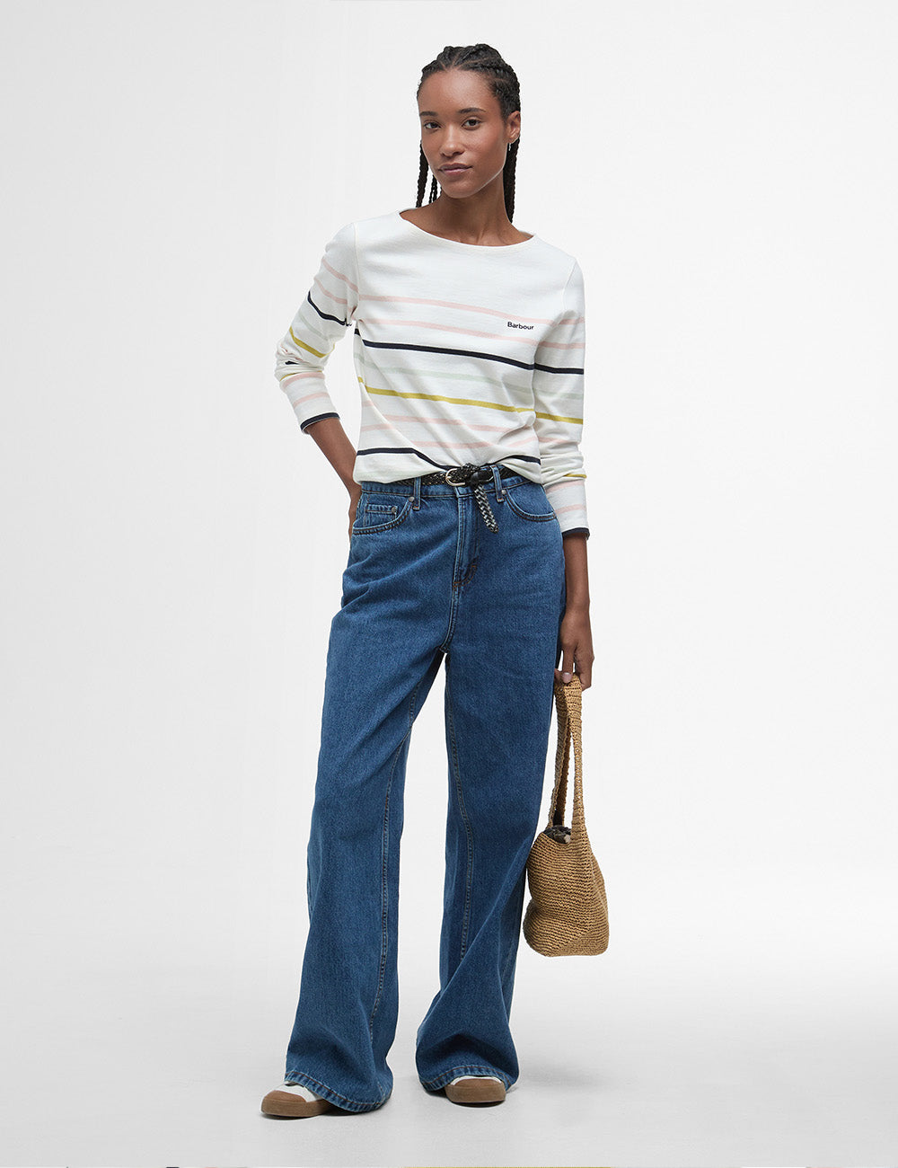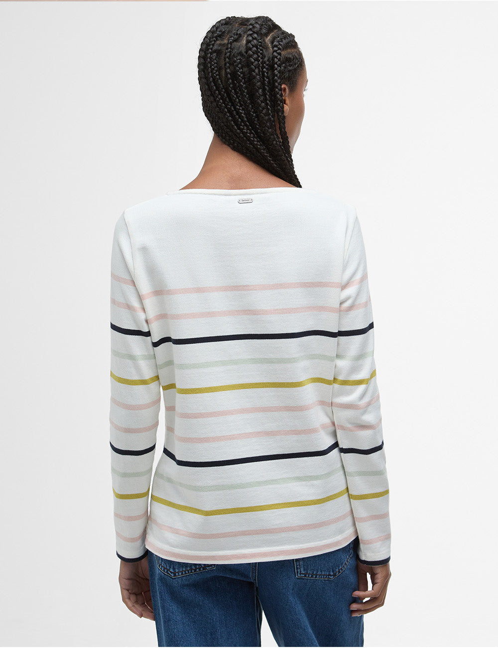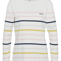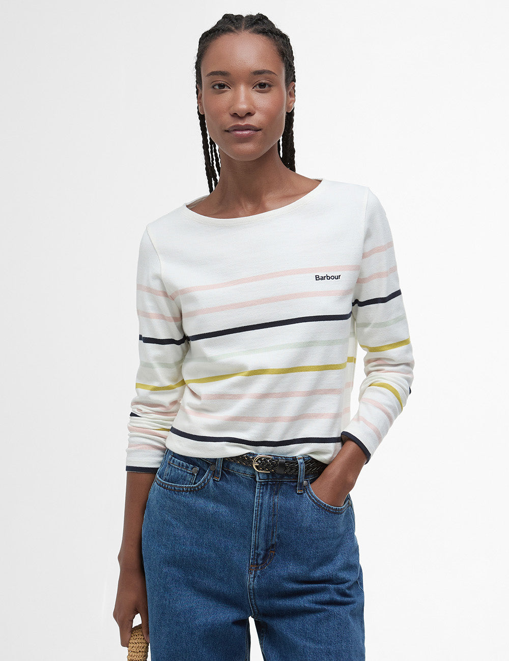 Bring effortless style to your weekend wardrobe with the Hawkins Top. Crafted from pure cotton, this garment boasts a round neck, long sleeves and stripe detailing. Finished with classic Barbour script embroidery to the chest.