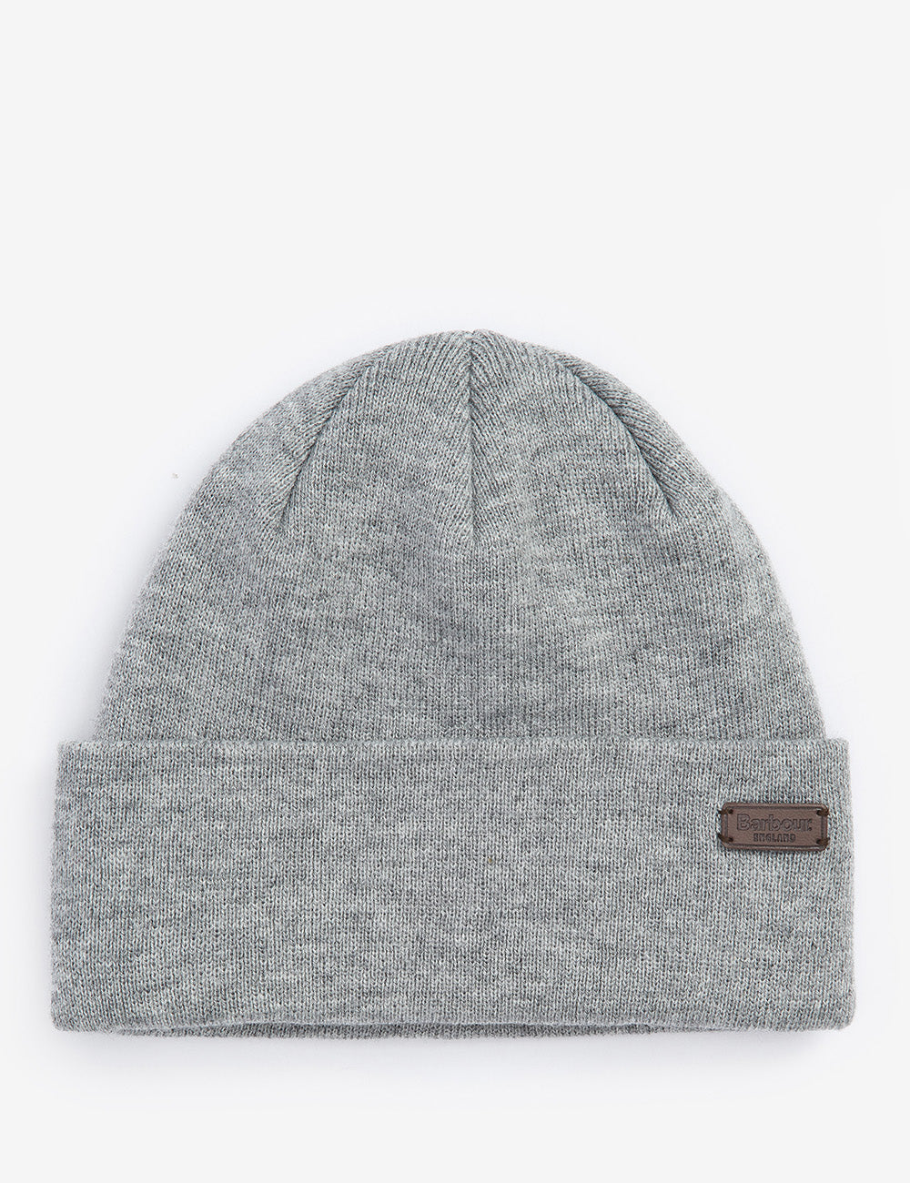 Crafted from knitted fabric with a double-layer construction, this traditional beanie features a classic watchcap style and a darted crown to help retain heat. Finished with a contrasting branded badge to the front.