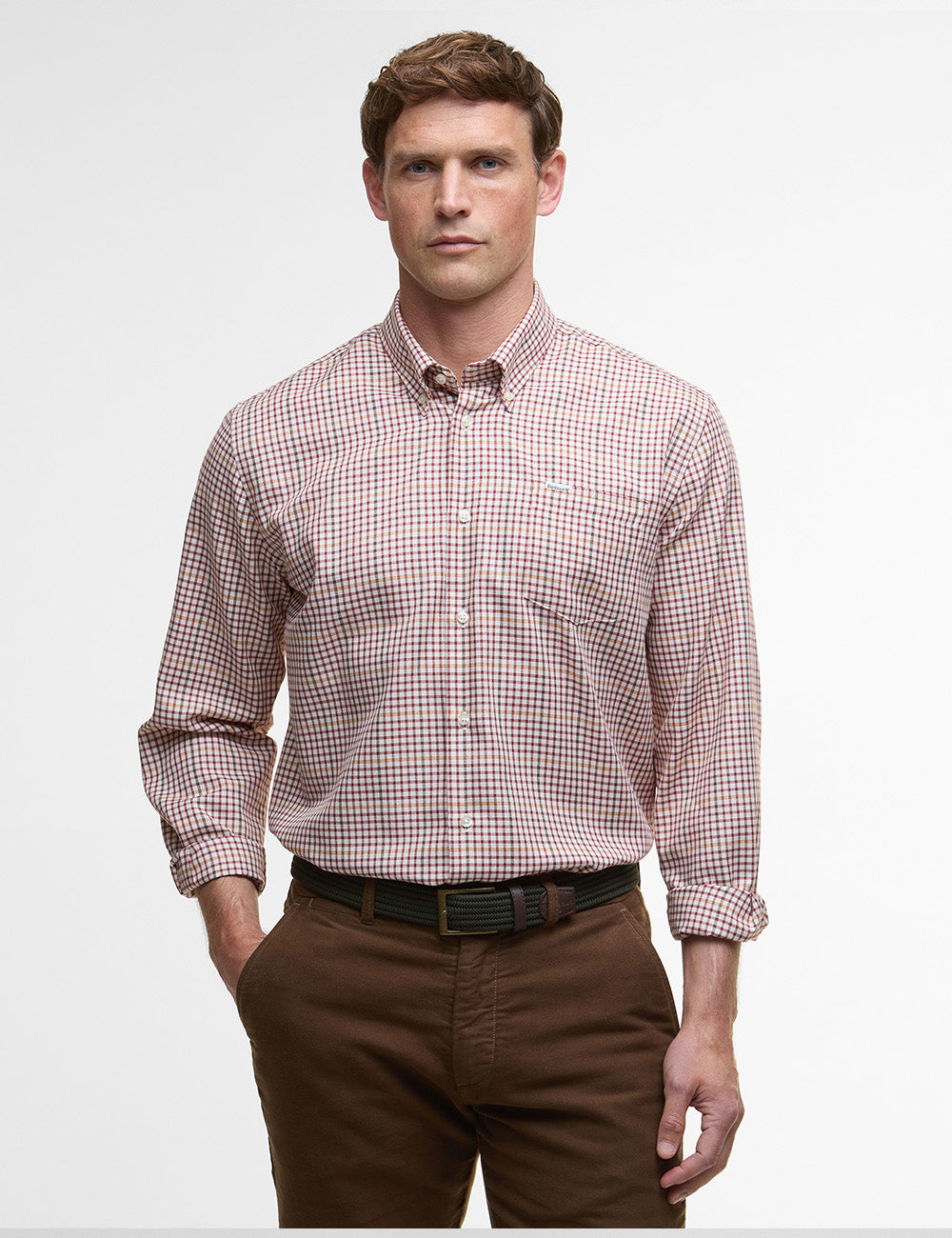 - Barbour branded embroidery positioned at chest pocket