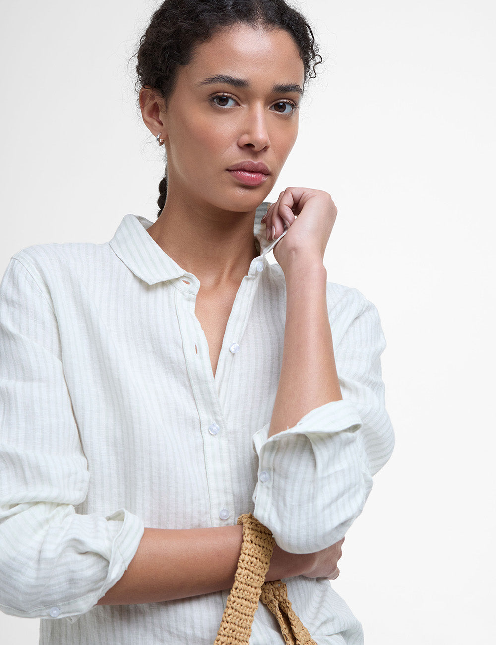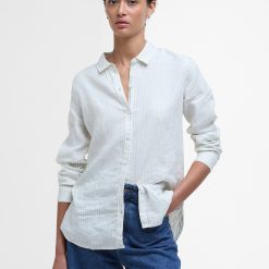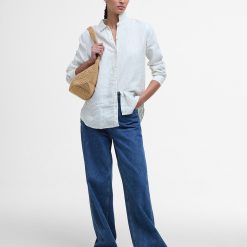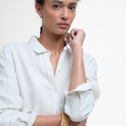Expertly crafted from pure linen, this lightweight shirt is the ultimate choice for warm summer days. Its relaxed fit allows for comfortable wear, while the slim collar adds a touch of femininity. The curved hem and discreet metal brand badge complete the look. Perfect for staying cool and stylish all summer long.