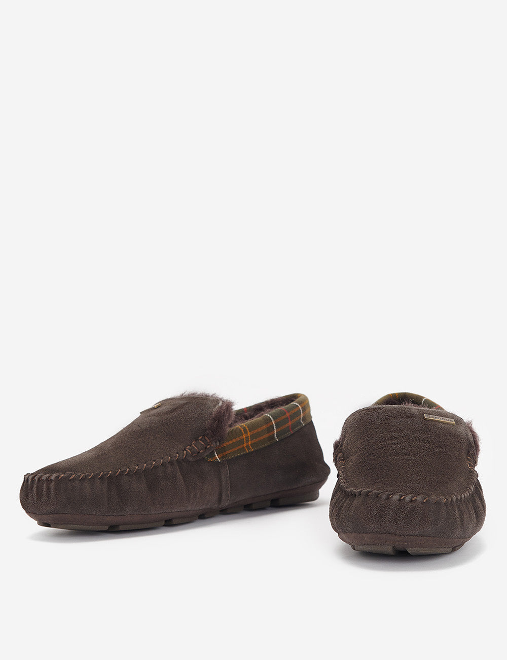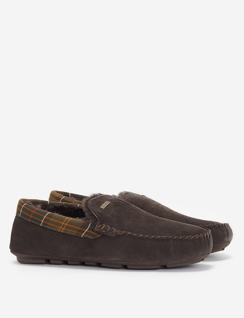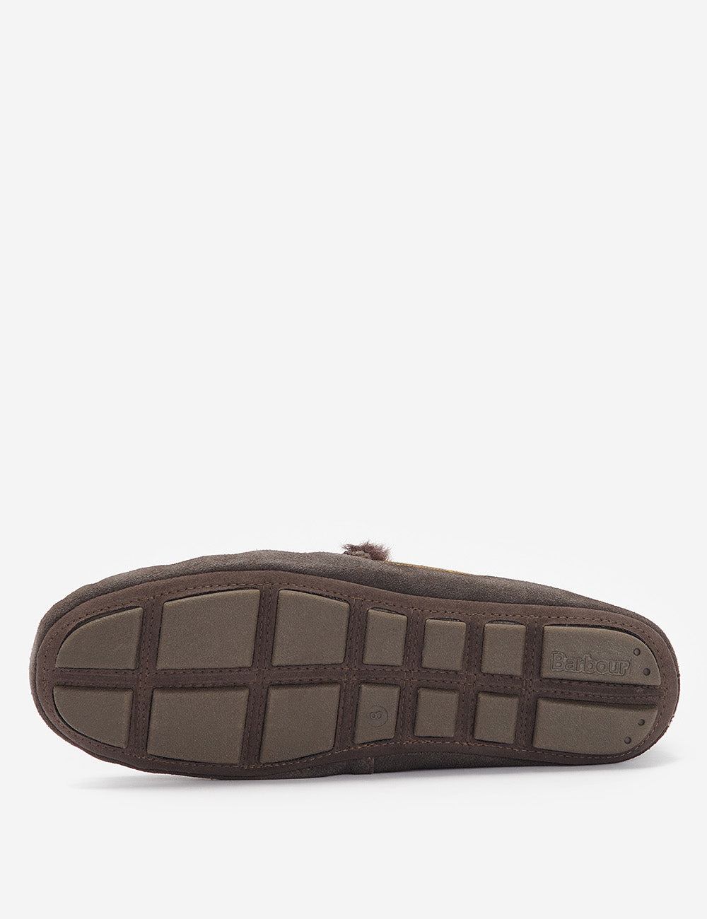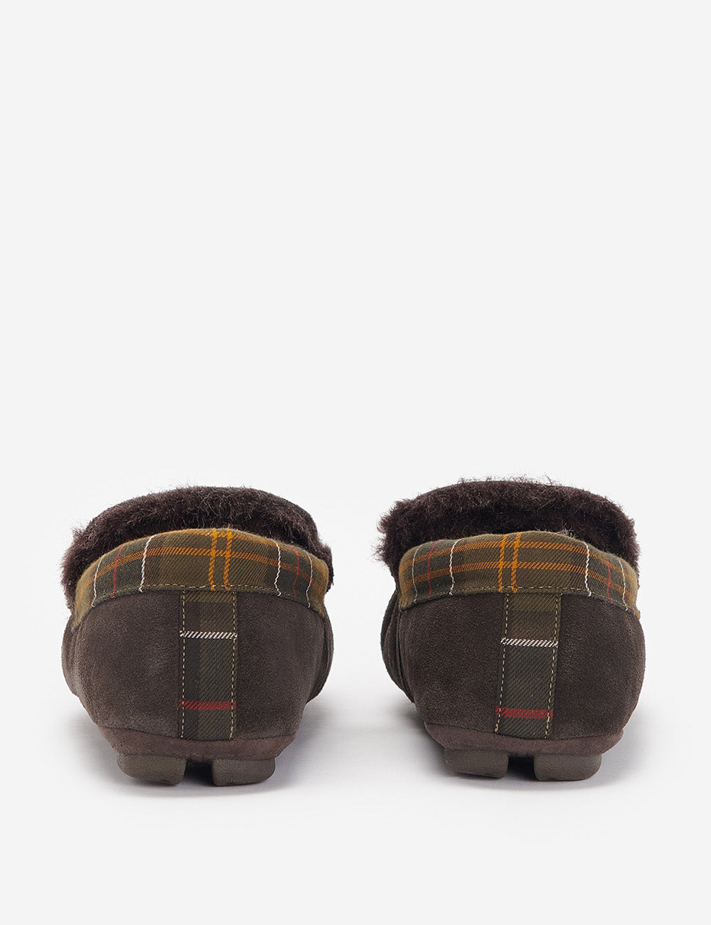 These moccasin style slippers feature a monochrome tartan upper and a cosy faux-shearling lining that offers luxurious warmth. The slippers are finished off with a hard wearing rubber sole and a metal Barbour Badge to the outer front.