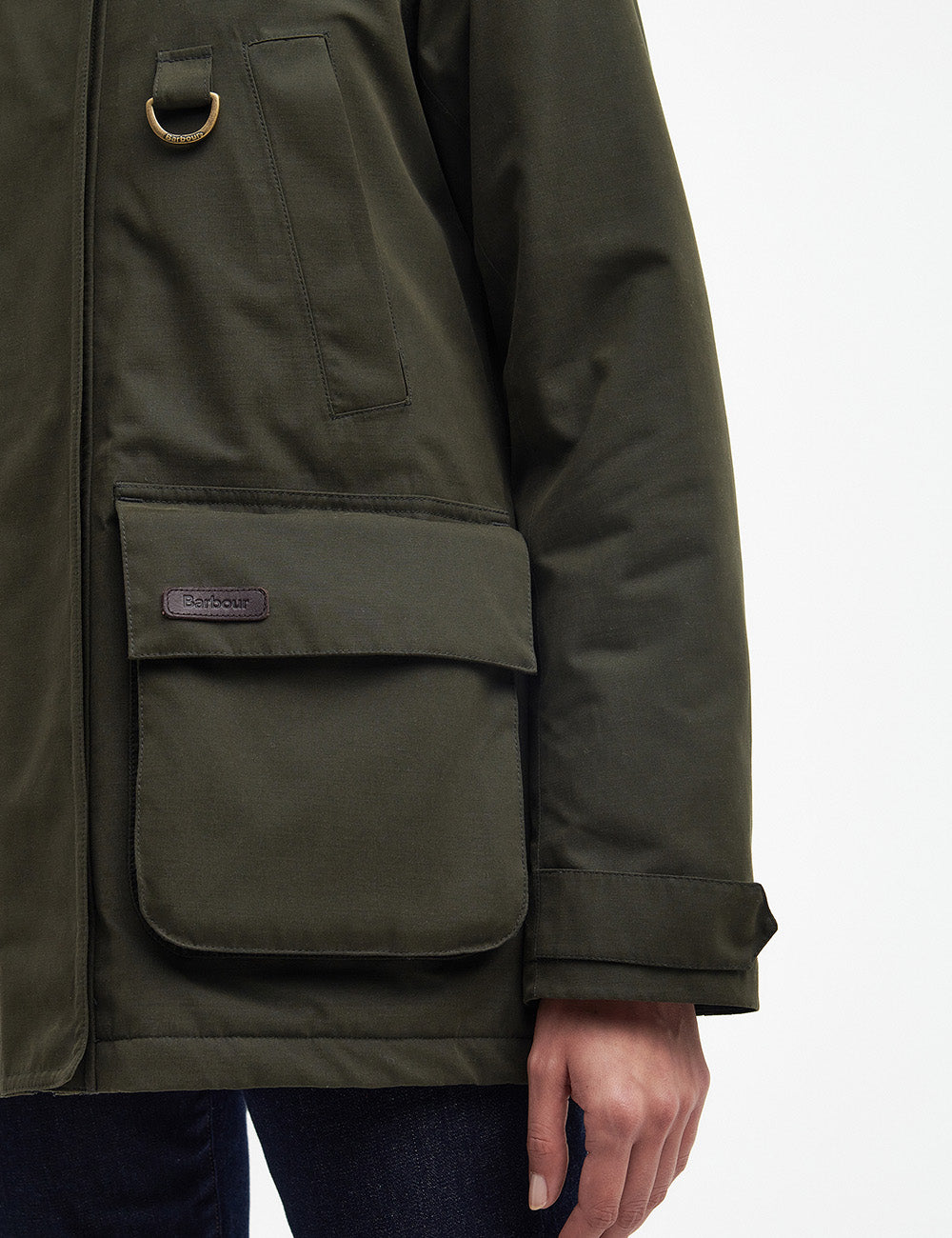 This practical jacket features an adjustable belt adding a flattering silhouette, while the D-ring dog lead attachment allows for hands-free convenience. Stay warm with Thermore insulation and keep essentials close with bellow pockets and removable linings for easy cleaning.