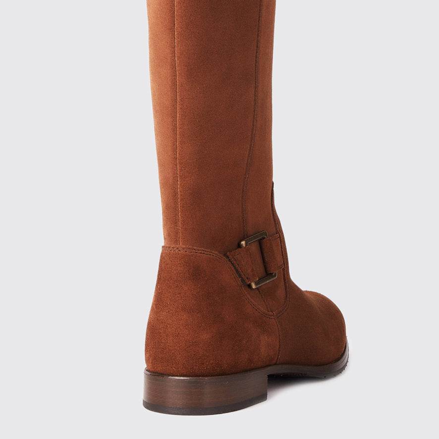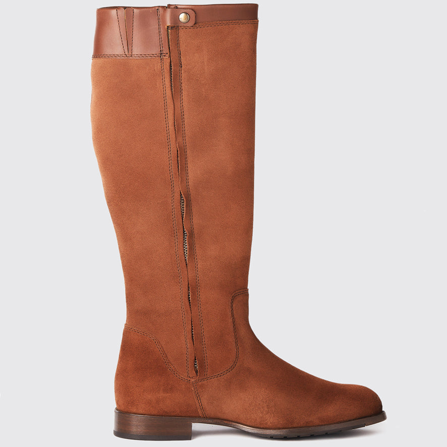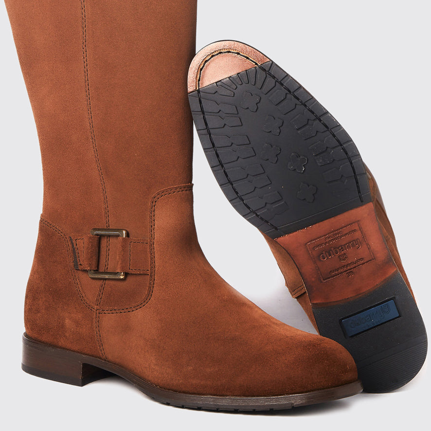 The Dubarry Limerick boot for women matches technical performance with a sophisticated urban look. The tall, contoured boot in pull-up leather?features a smart oiled appearance and a leather stacked heel ideal for wearing around town but incorporates the breathable GORE-TEX lining and a water resistant finish of the country boot collection for warm and dry feet.?
