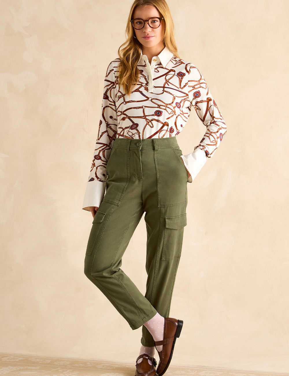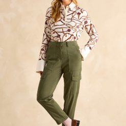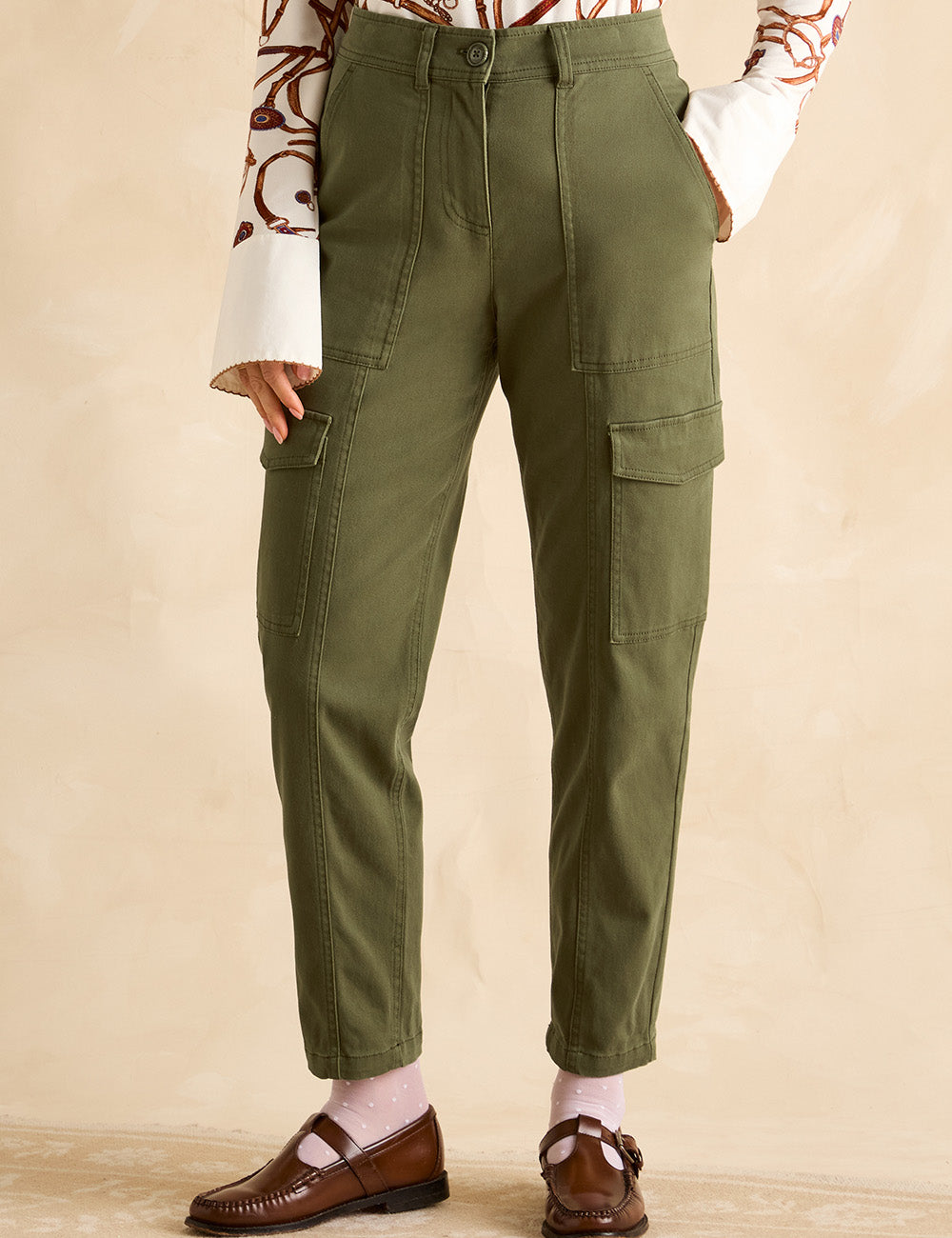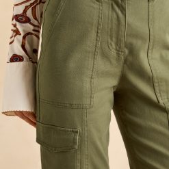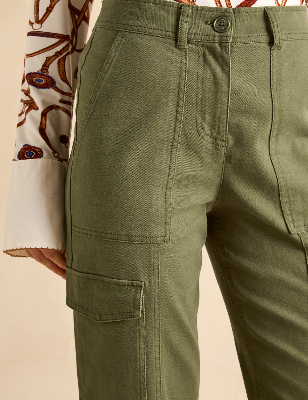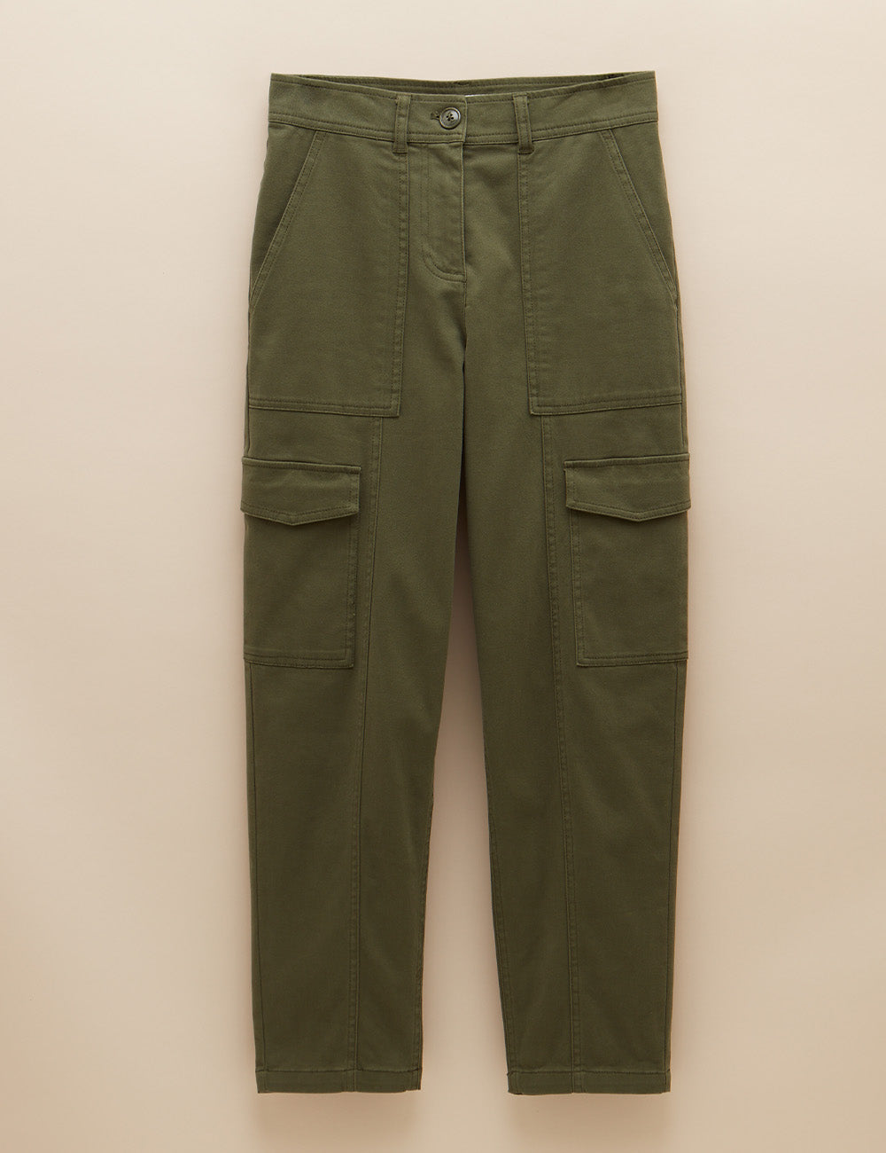 These cargo trousers offer a stylish alternative to jeans with a flattering tapered leg and mid-rise waist. Featuring classic utility pockets on the waist, thighs, and rear, plus detailed seams, they combine practicality with modern design. Belt loops let you customize the fit, while the zip and button fastening ensures ease and security.?