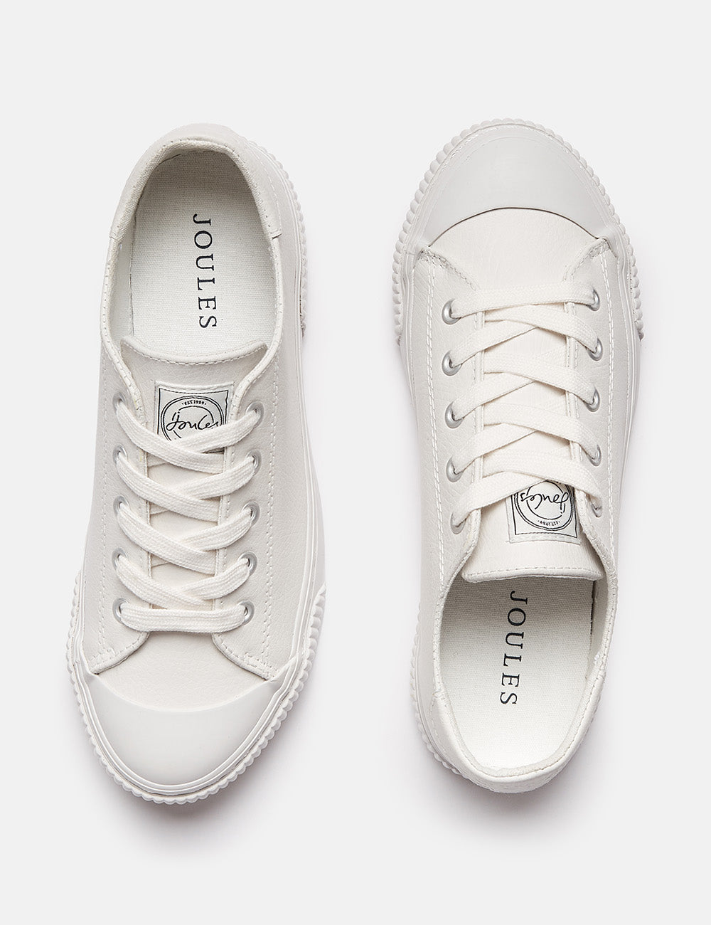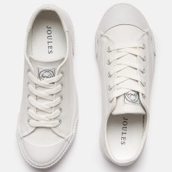 A preppy update to our classic pumps for the warmer seasons. Lightweight and breathable cotton canvas uppers, paired with a white rubber outsole, toe cap and ridged foxing, create a sporty look. With a comfortable fit and Joules branding, these trainers are perfect for the active and stylish.