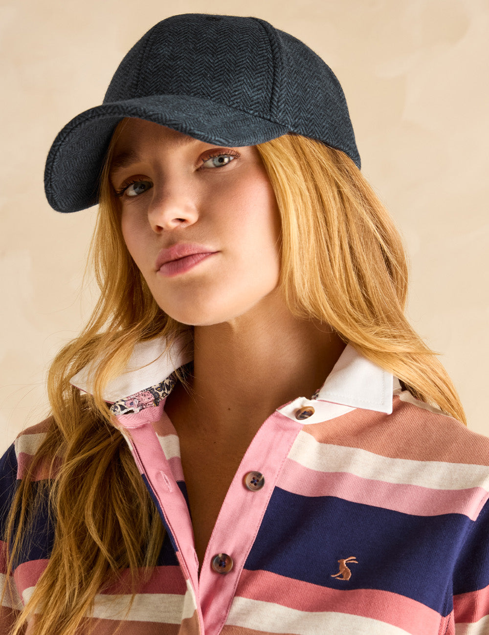- Peak with topstitching