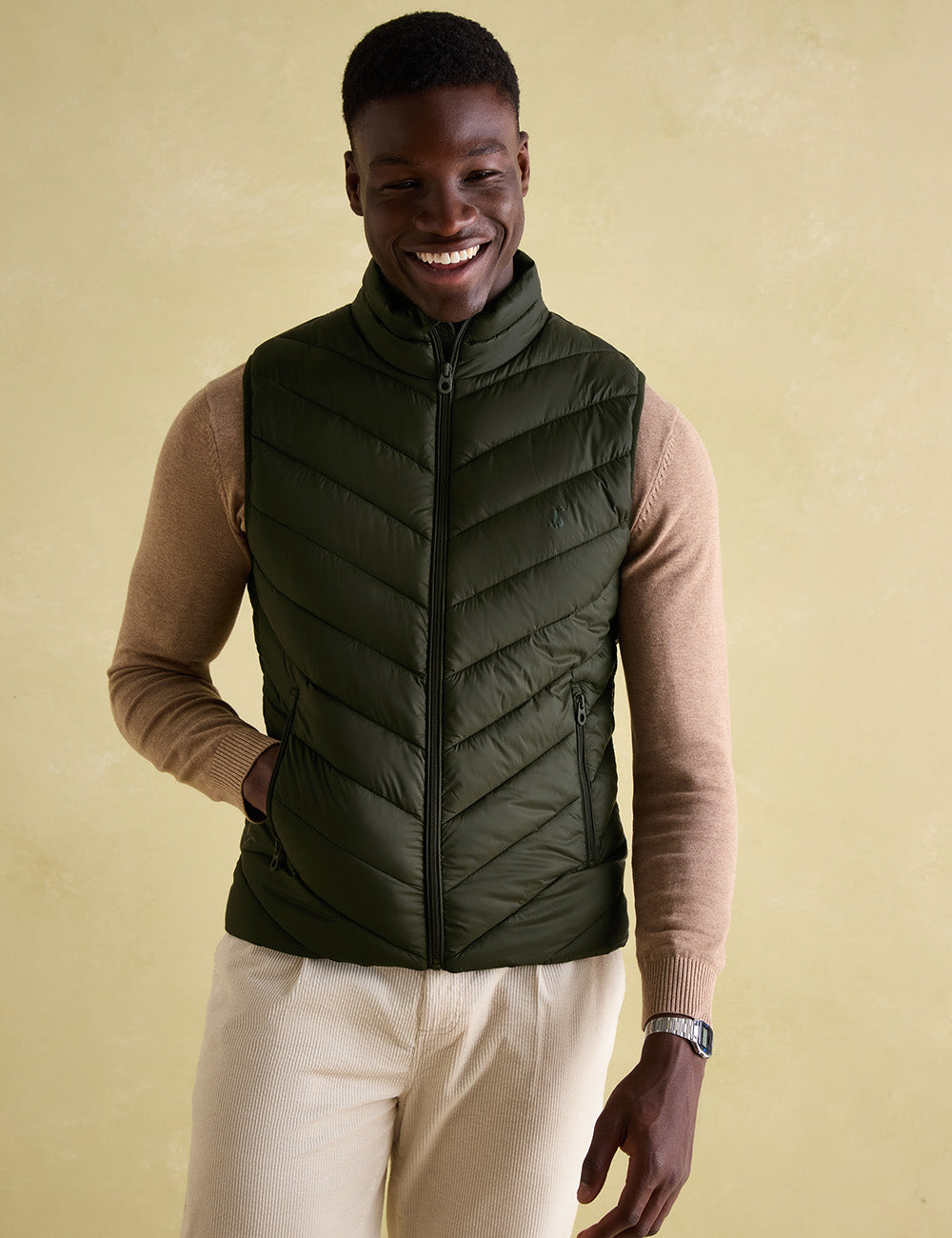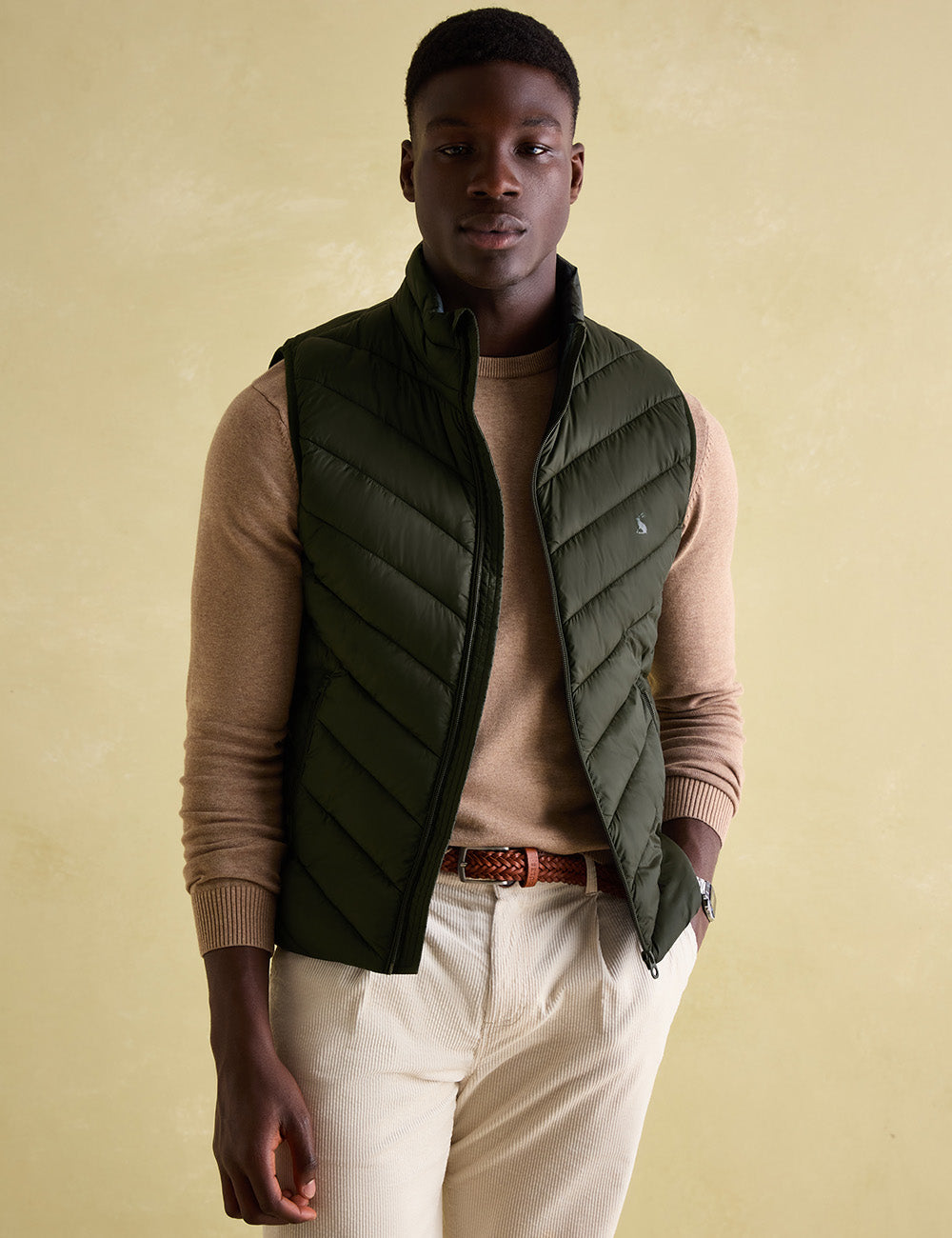 Perfect for everyday wear, this gilet boasts wide chevron quilting, wadding inside and out, and side zipped pockets. The zip fastening with chin guard and contrasted colour lining add extra functionality, while the iconic Joules hare print completes this stylish piece.