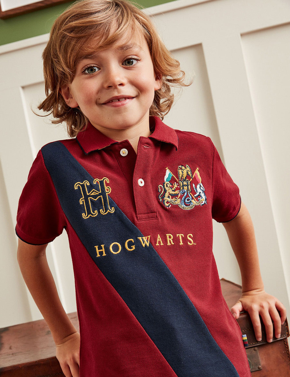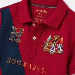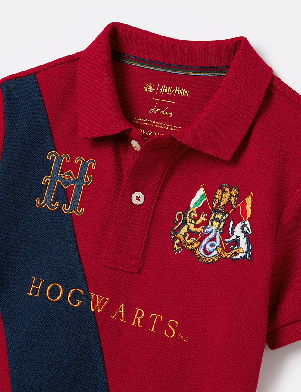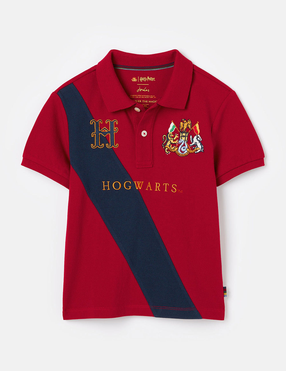 This classic polo shirt is made from breathable pique cotton and features details inspired by the iconic Harry Potter? series. The contrasting navy sash and embroidered Hogwarts? school crest make it a stylish and unique choice for young fans to show off their Gryffindor? spirit.