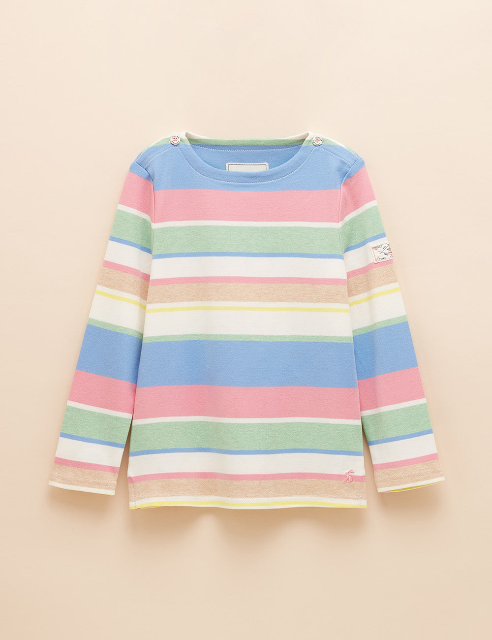 This long-sleeved t-shirt by Joules is crafted from durable jersey, providing comfort and protection for your little one’s daily mischief-making. It features a boat neck and button fastenings to each shoulder, plus nautical stripes and Joules branded details. Perfect for layering under skirts and pumps for a timeless look.