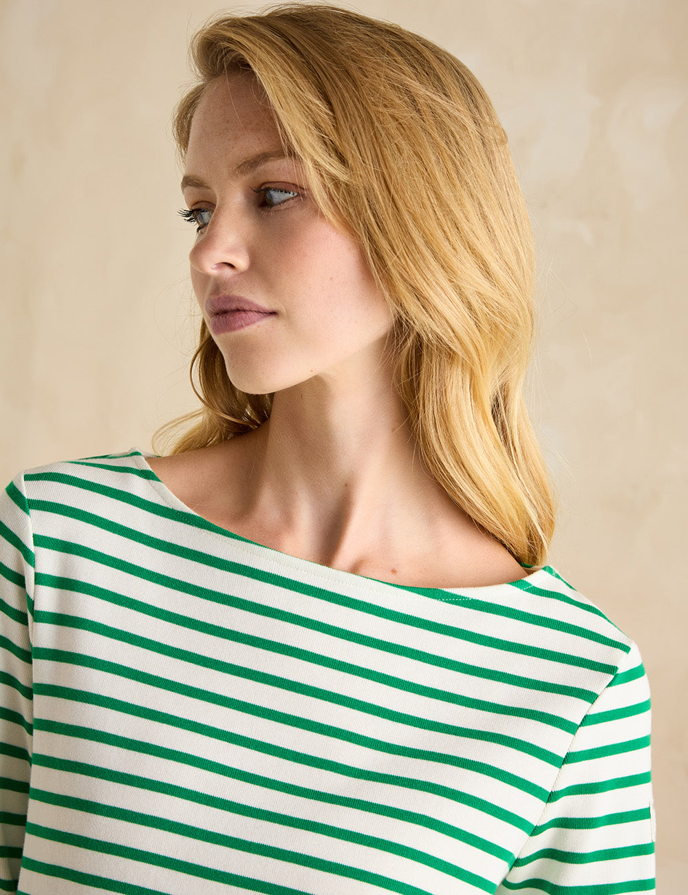 Crafted from a heavyweight, durable Jersey fabric, the Harbour Top is designed with a relaxed fit through the body and long, slim fitting sleeves for layering. This piece features a?flattering boat neckline and curved hem. This everyday essential will soon become one of your best-loved styles.