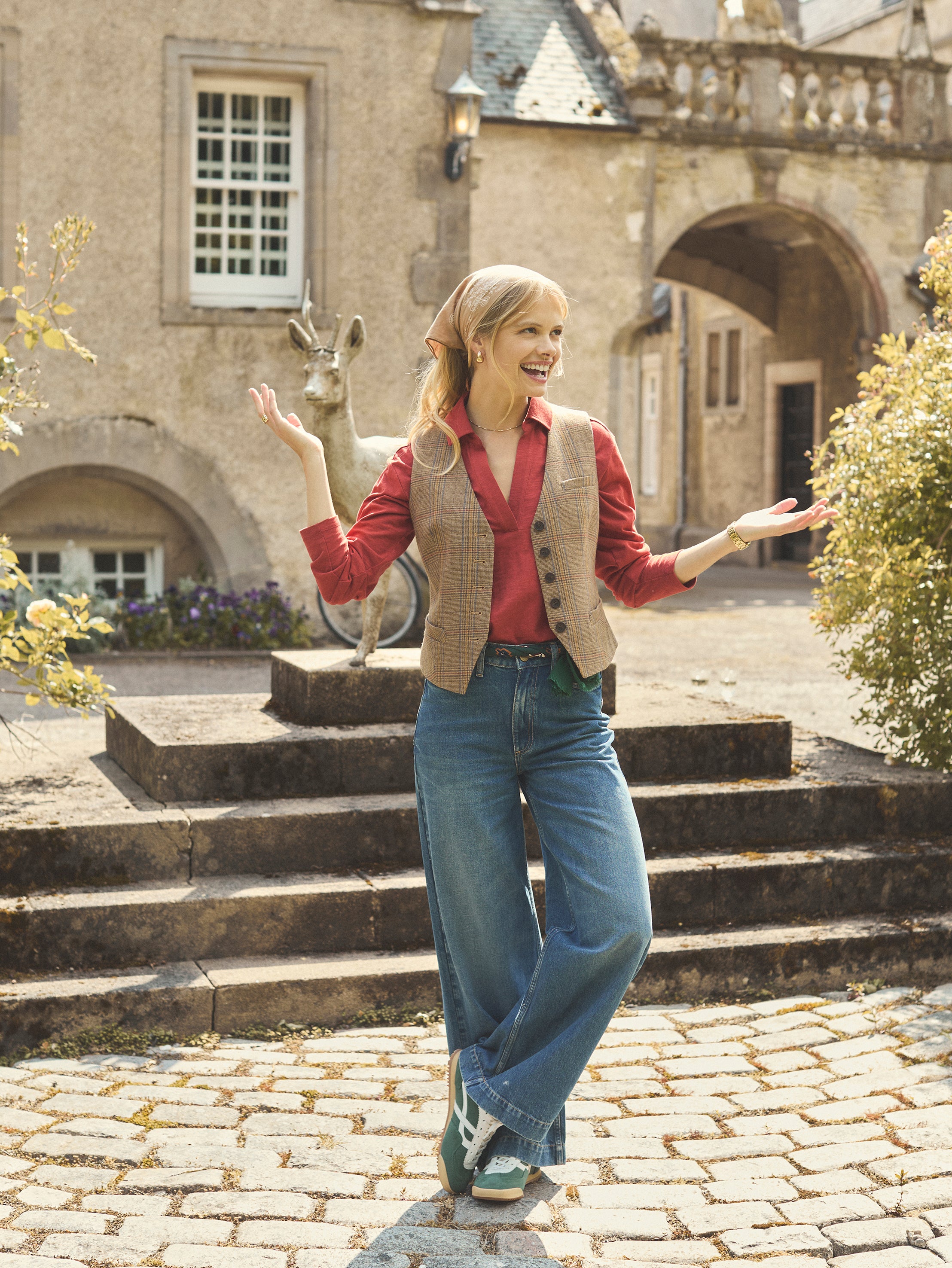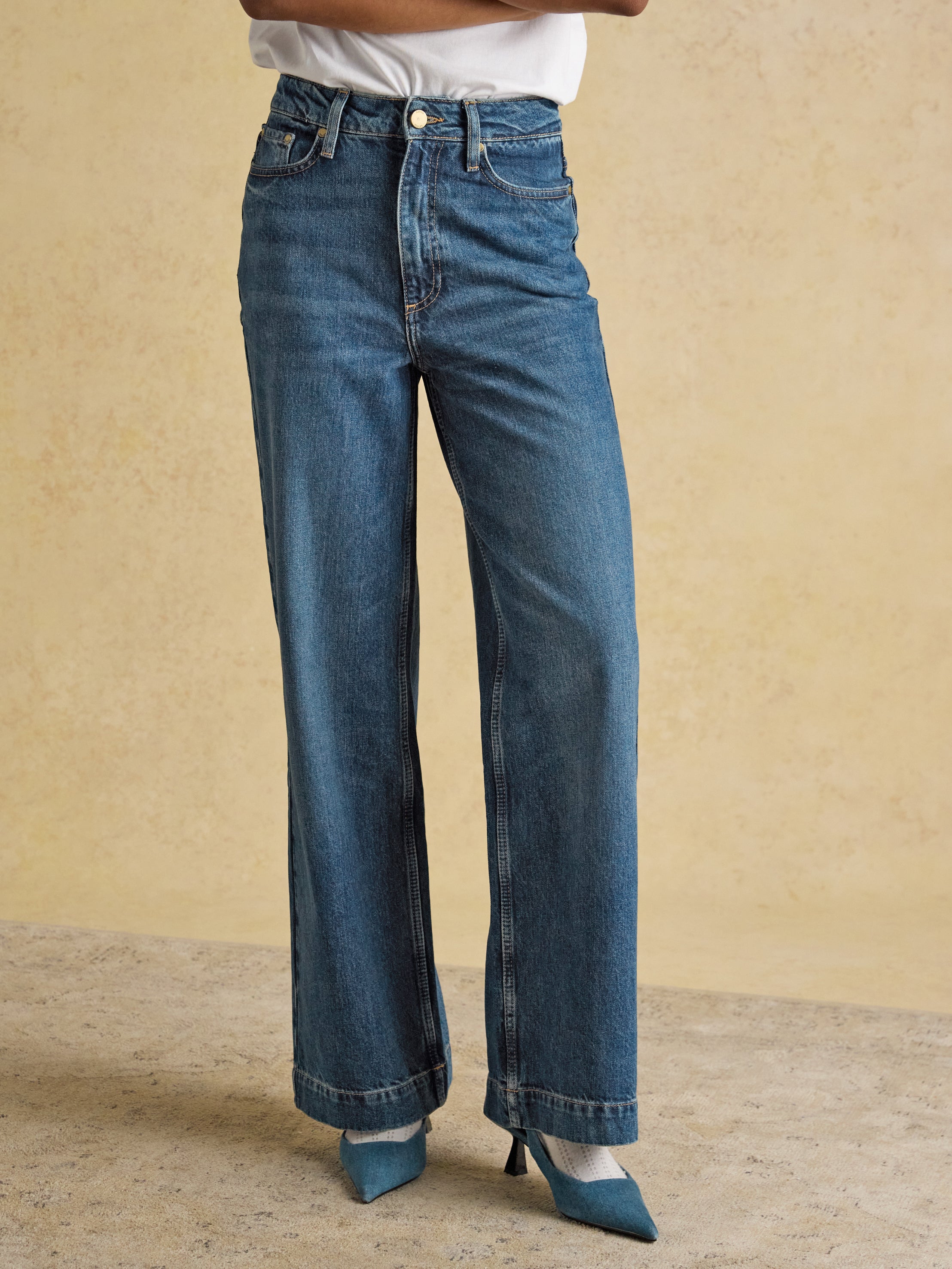 Update your denim collection with these Joules wide-leg jeans, a modern silhouette that remains timeless. Designed with a flattering high rise waist, they offer comfort and style in equal measure. Crafted from 100% cotton for a durable yet breathable finish, they feature a zip fly fastening, practical belt loops, and the classic five pocket design. A branded leather patch at the back adds a signature Joules touch of quality and authenticity.