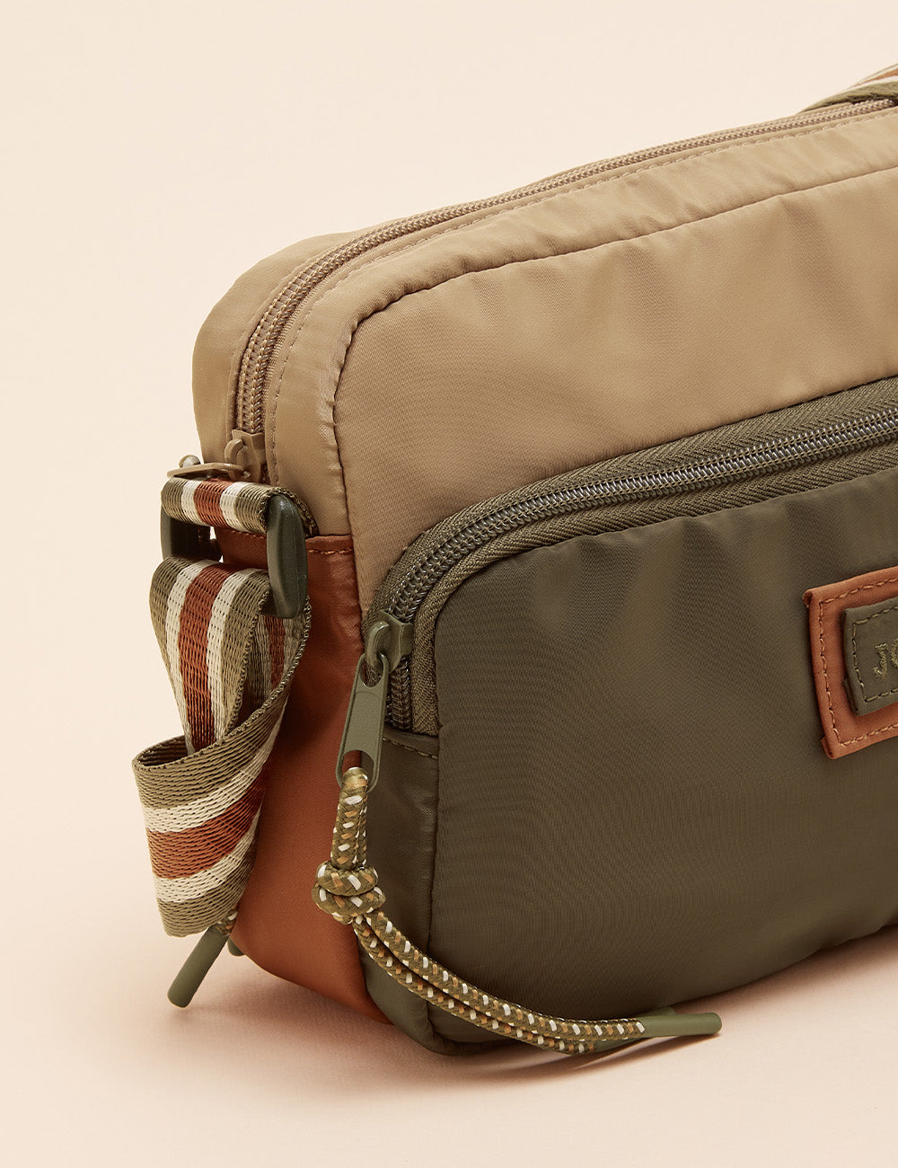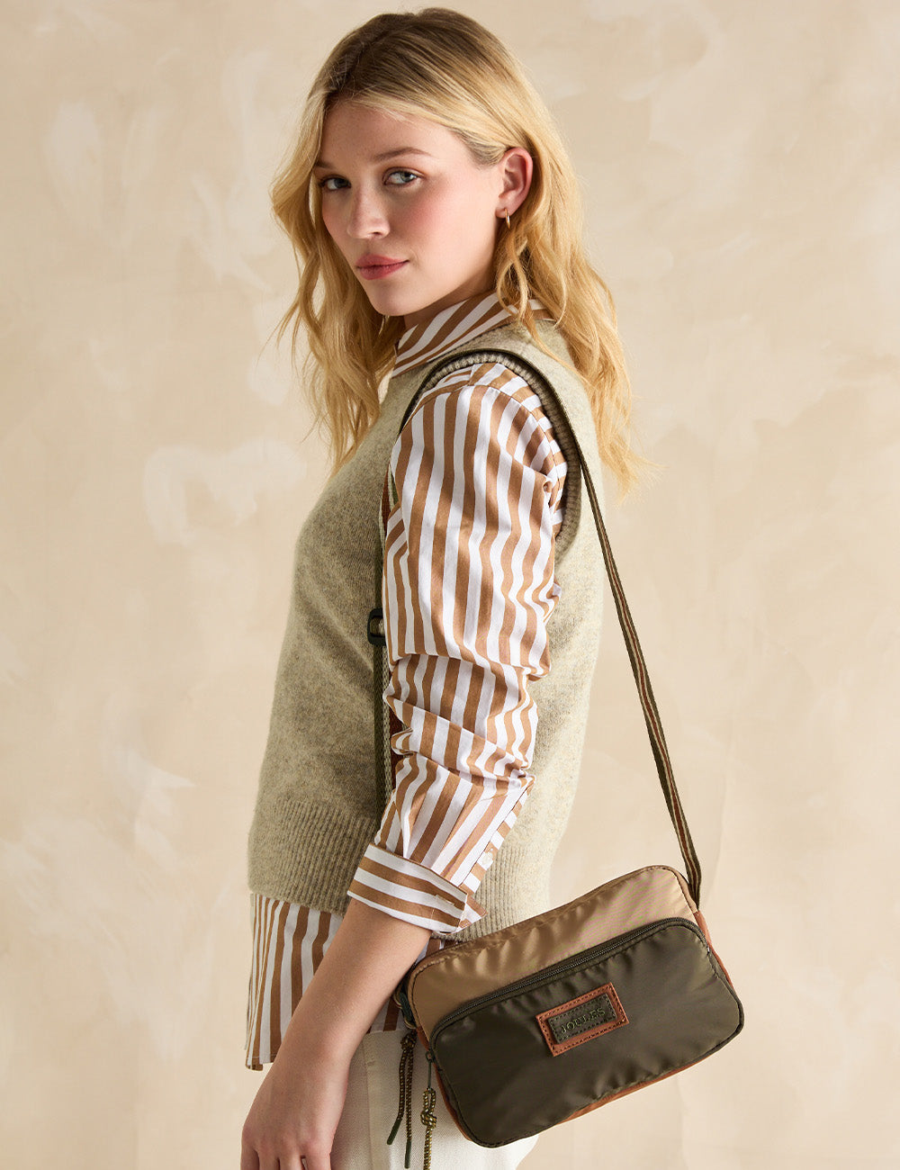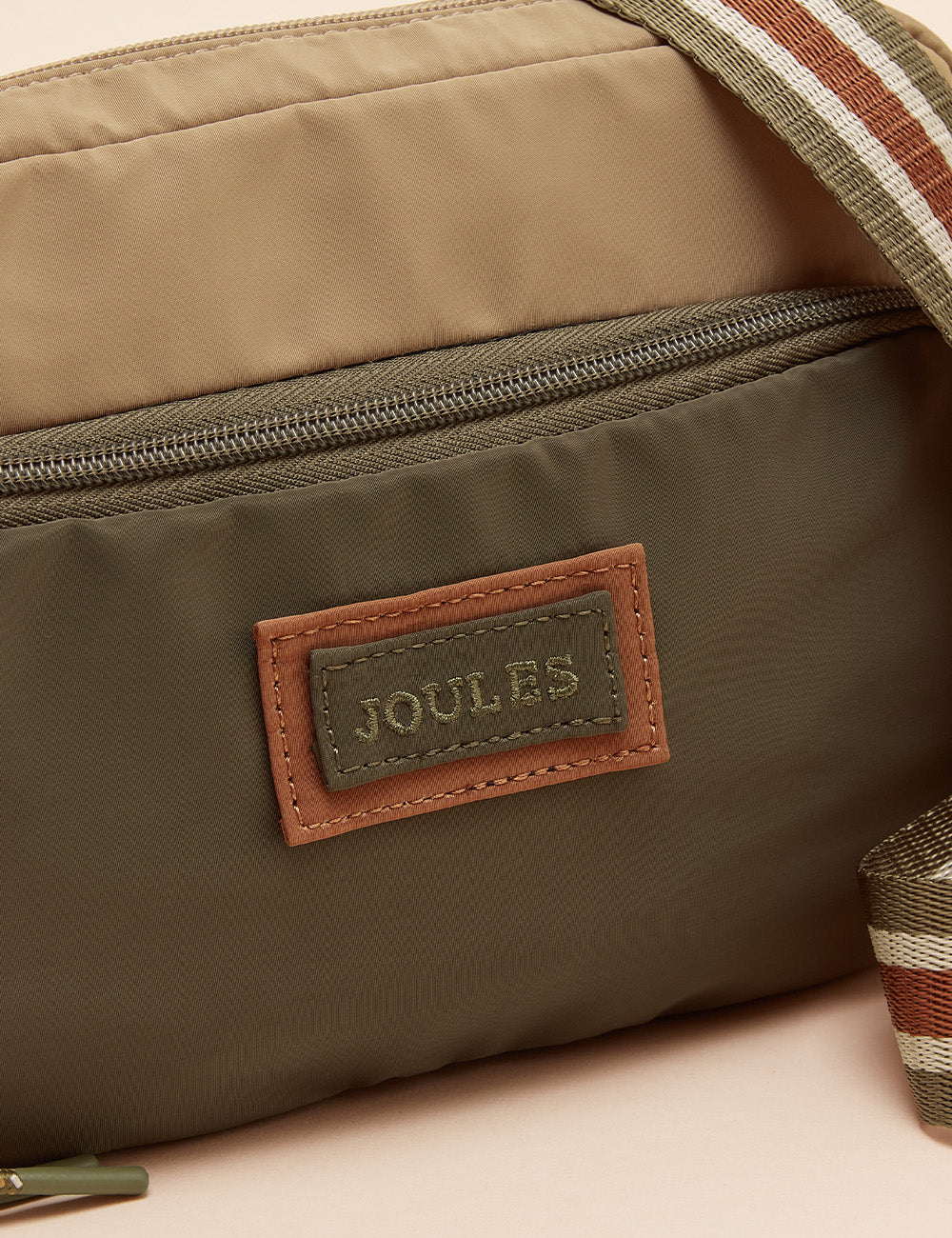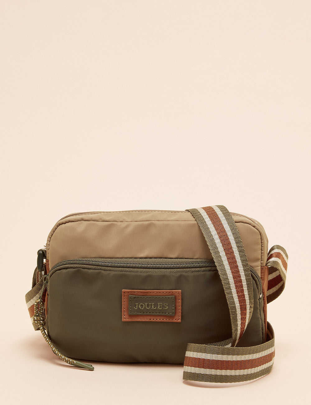 This versatile bag is the perfect blend of style and function for your everyday adventures. Made from durable nylon, it features a comfortable striped adjustable strap that eases shoulder strain. Its colour block design adds a chic touch, while two zipped compartments and an internal pocket keep your essentials neatly organised. Finished with flecked bungee cord zip pulls, jacquard spot lining, and a branded Joules tab, this bag is designed to be your go-to accessory wherever you go.