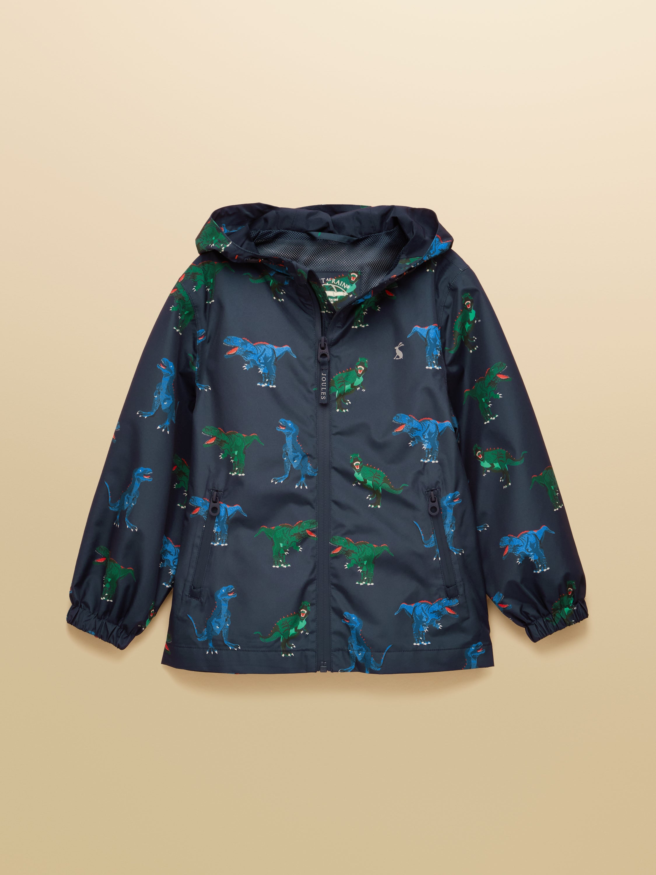 Joules Kids Rainwell Dino Raincoat Navy provides dependable protection with waterproof fabric, taped seams and practical pockets. Finished with thoughtful details for reliable day-to-day use.