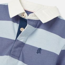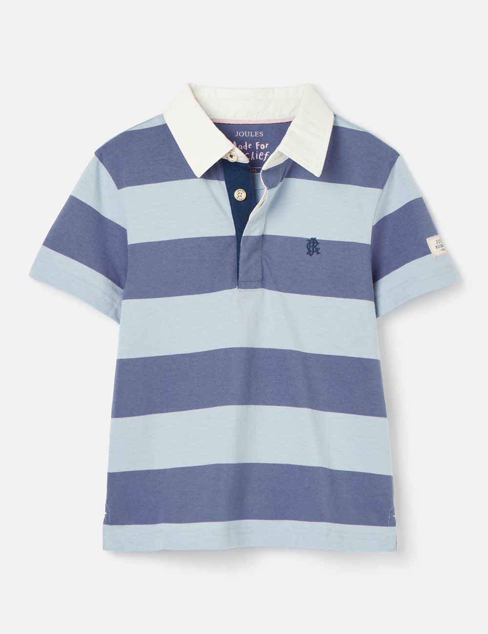 This striped polo shirt is made from quality jersey material and features a classic striped pattern along with a twill collar and side splits for added style and comfort. The shirt also includes a button placket and Joules embroidered hare on the chest.