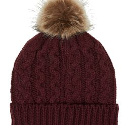 Crafted from a chunky, acrylic-polyester blend with a cosy fleece lining for added warmth, this hat features a faux-fur pom-pom and wide rib turn-up band to enhance both style and insulation.
