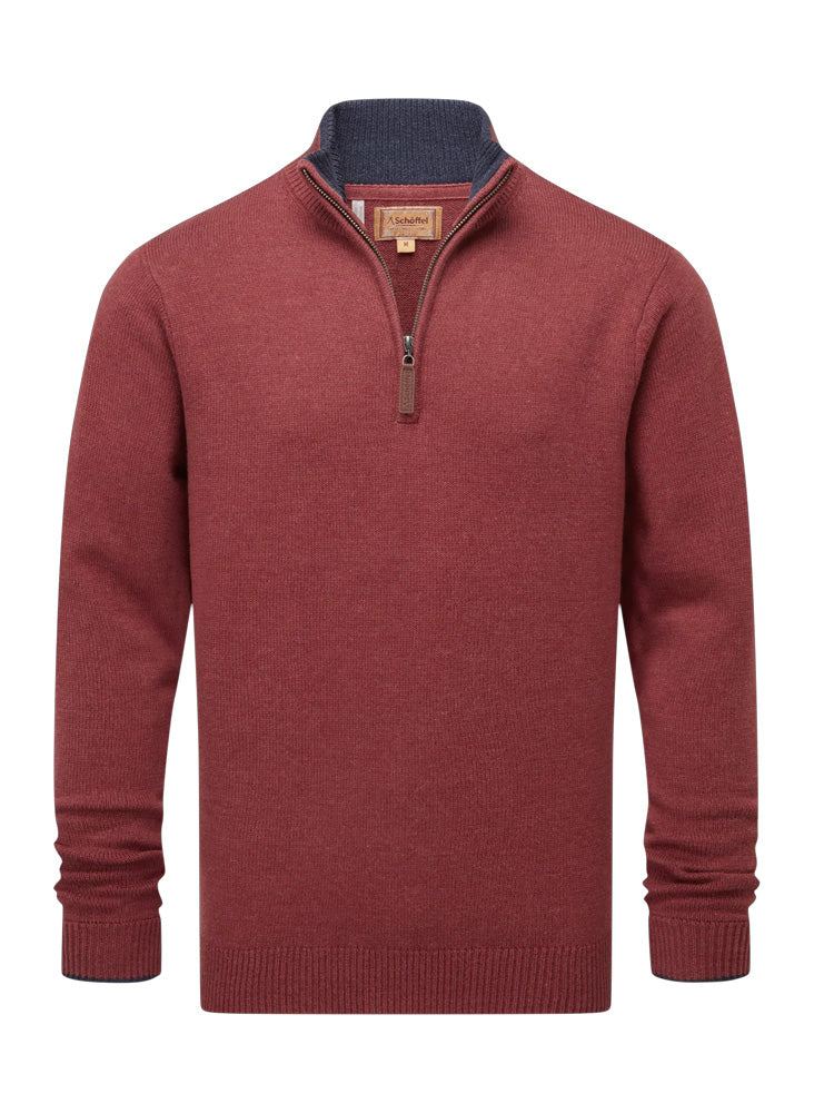 Schoffel Blair 1/4 Zip Jumper Redwood delivers easy warmth with a neat quarter zip and ribbed trims, ideal over shirts or tees. everyday comfort and clean finish complete the design.