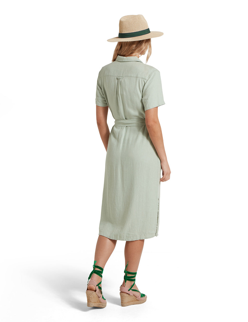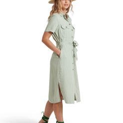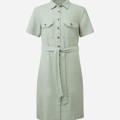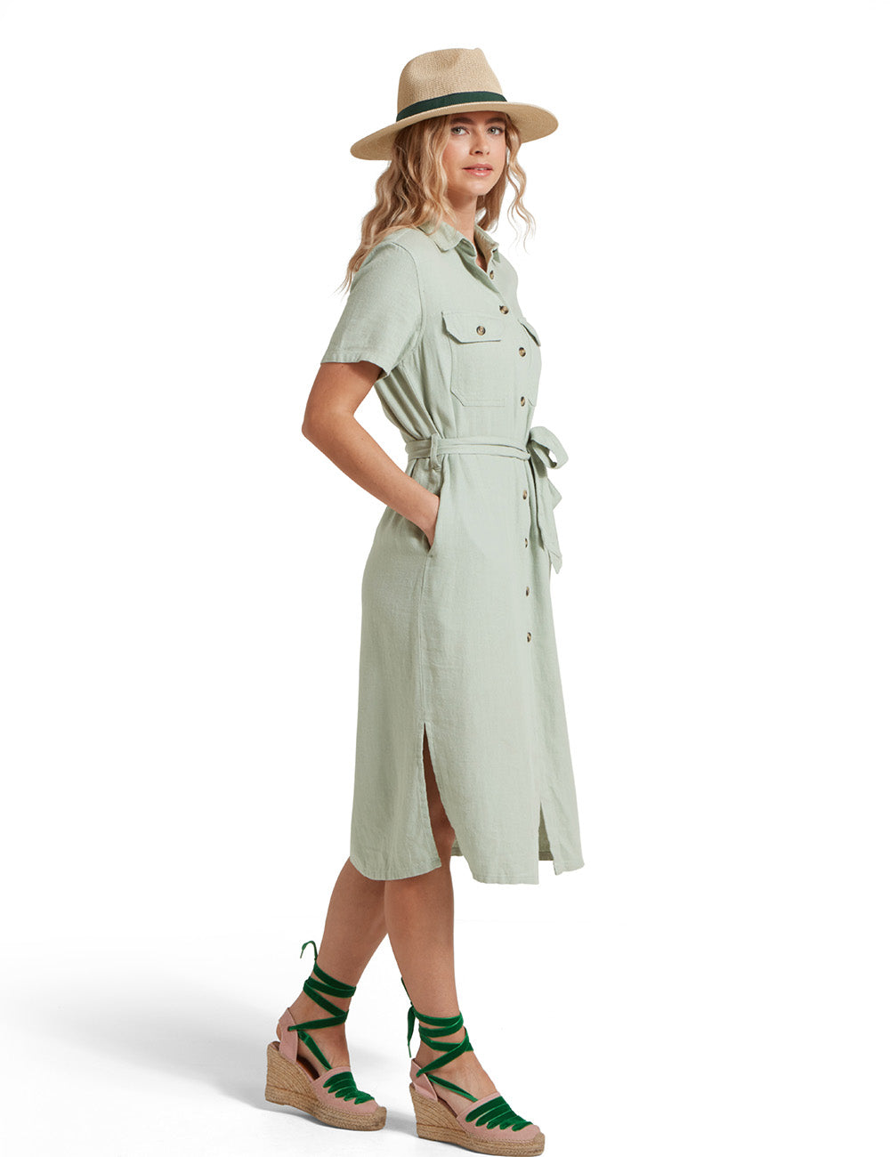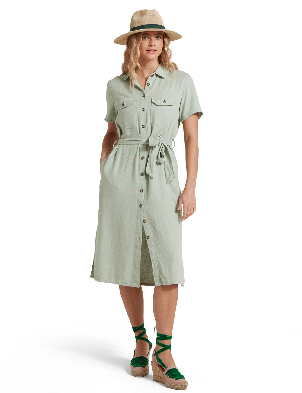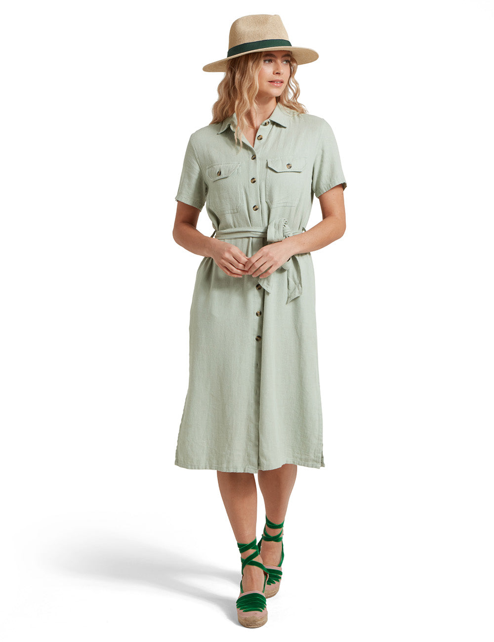 Featuring double top and side pockets, contrasting buttons, and a matching tie belt to cinch the waist, this dress offers both style and comfort. Perfect for any occasion, this piece will elevate your wardrobe with its touch of sophistication.