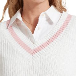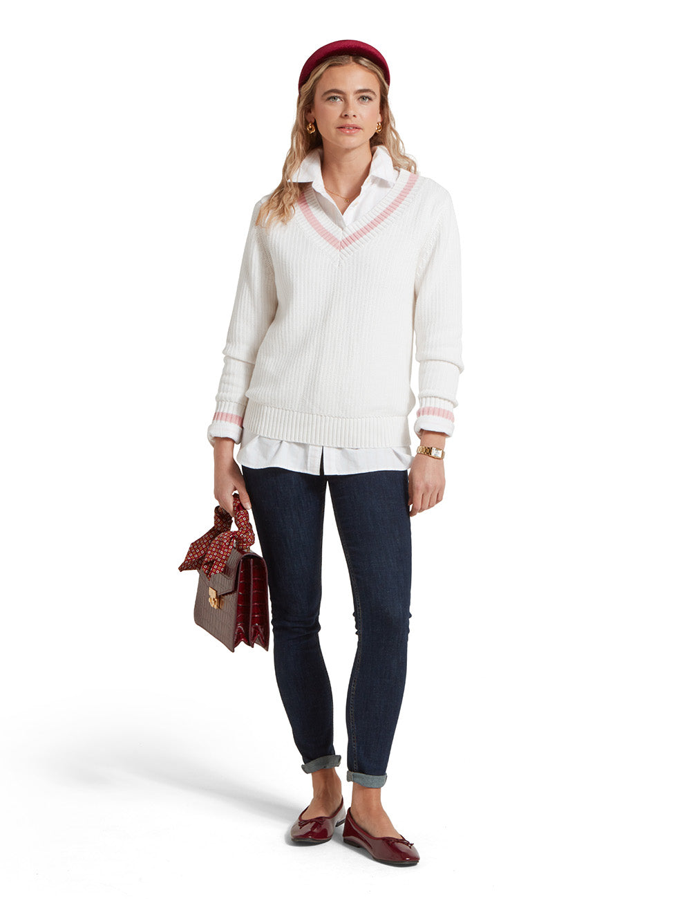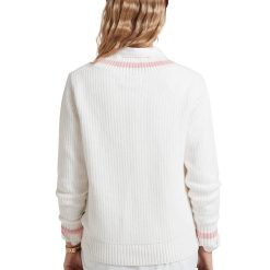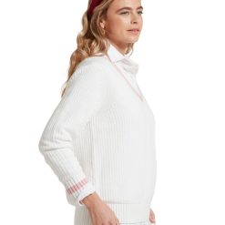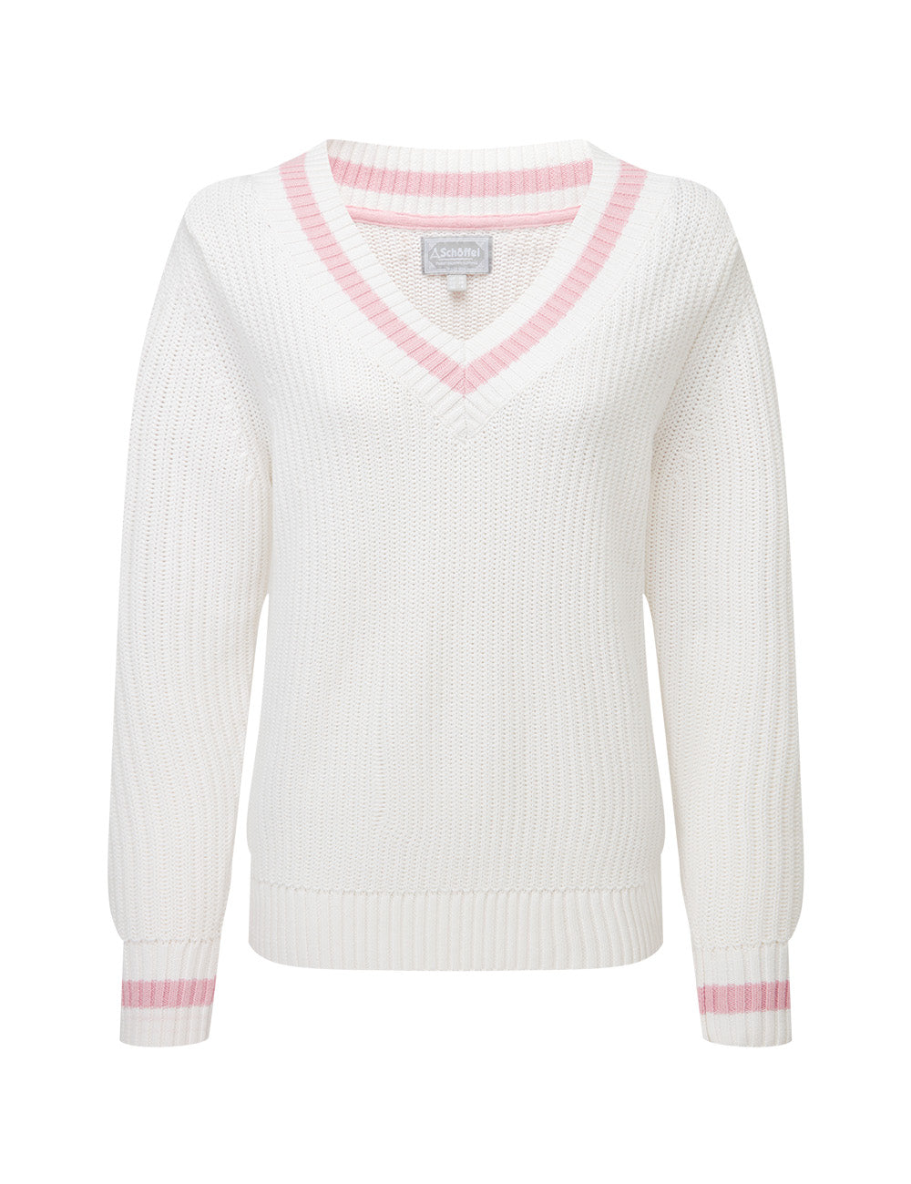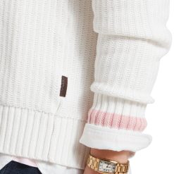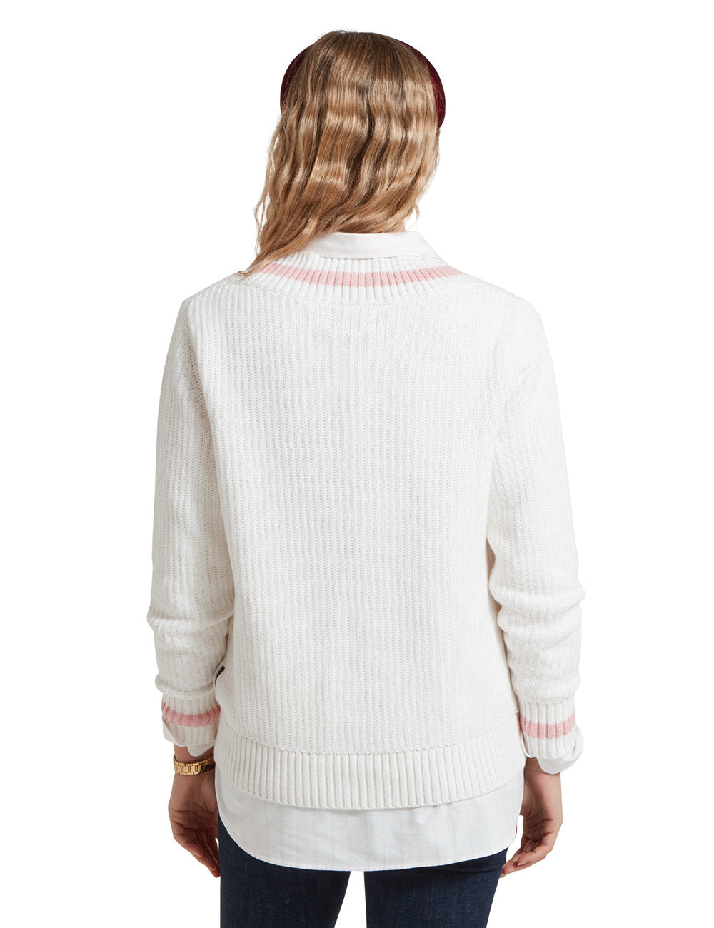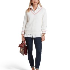 Made with a beautifully soft, chunky ribbed knit construction, this cricket-style jumper features a wide V-neck and ribbed hem and cuffs for a classic, textured look. Perfect for any occasion, this versatile jumper exudes character and charm.