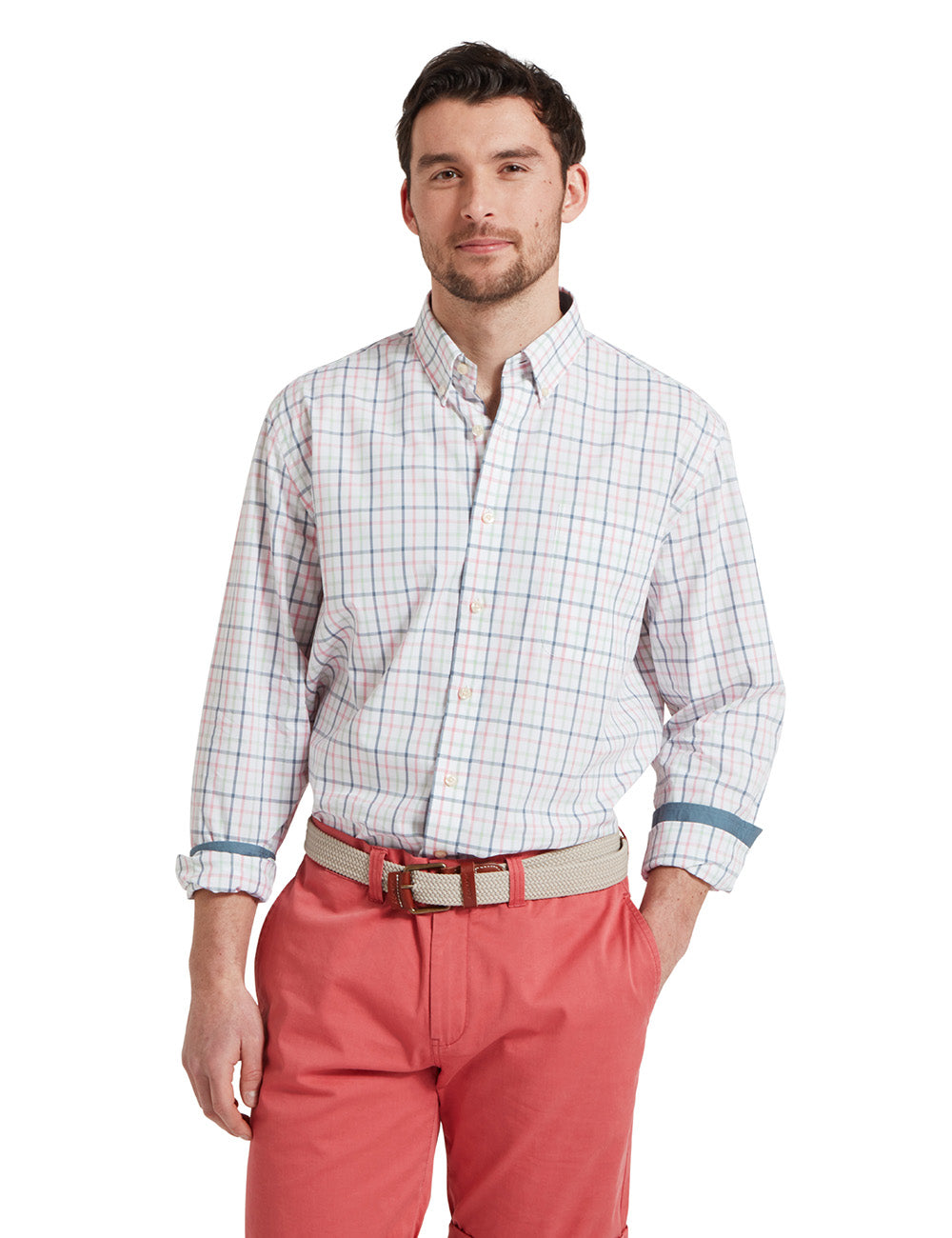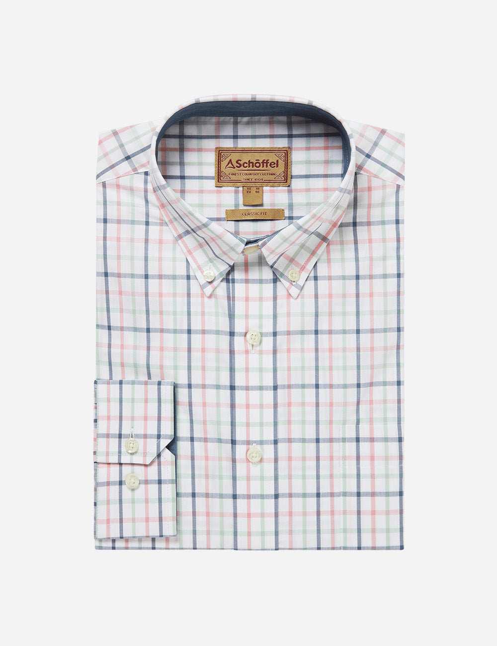 Schoffel Holkham Classic Shirt – Dark Pigeon Blue/Mauve Red