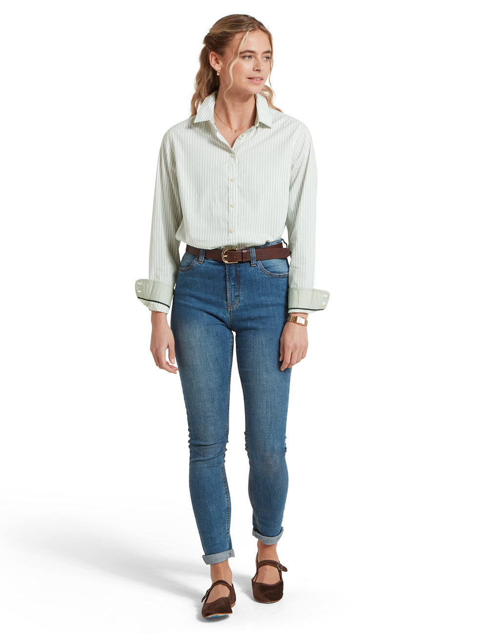Introducing this beautifully fitted Shirt – Aqua Sage. This summer staple allows for a tucked or untucked look, with the option to roll up the sleeves for a casual vibe. Made from crisp and breathable cotton poplin, it offers a tailored fit for a flattering silhouette. Perfect for warmer days, this versatile shirt is sure to become a new favourite.