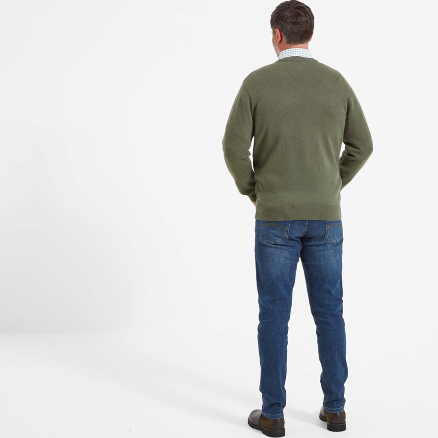 The Schoffel Lambswool V Neck Jumper in Moss is supremely soft, classic and timeless. It is the perfect addition to your knitwear wardrobe this autumn/winter season. Crafted using 100% lambswool, this jumper is beautifully soft and comfortable against the skin.? Ribbed hem and cuffs ensure the most flattering fit. Finished with leather branded details and zip pull. Ideal as a warm layer, pair this knitted jumper with a shirt and chinos for an effortlessly easy and classic outfit.