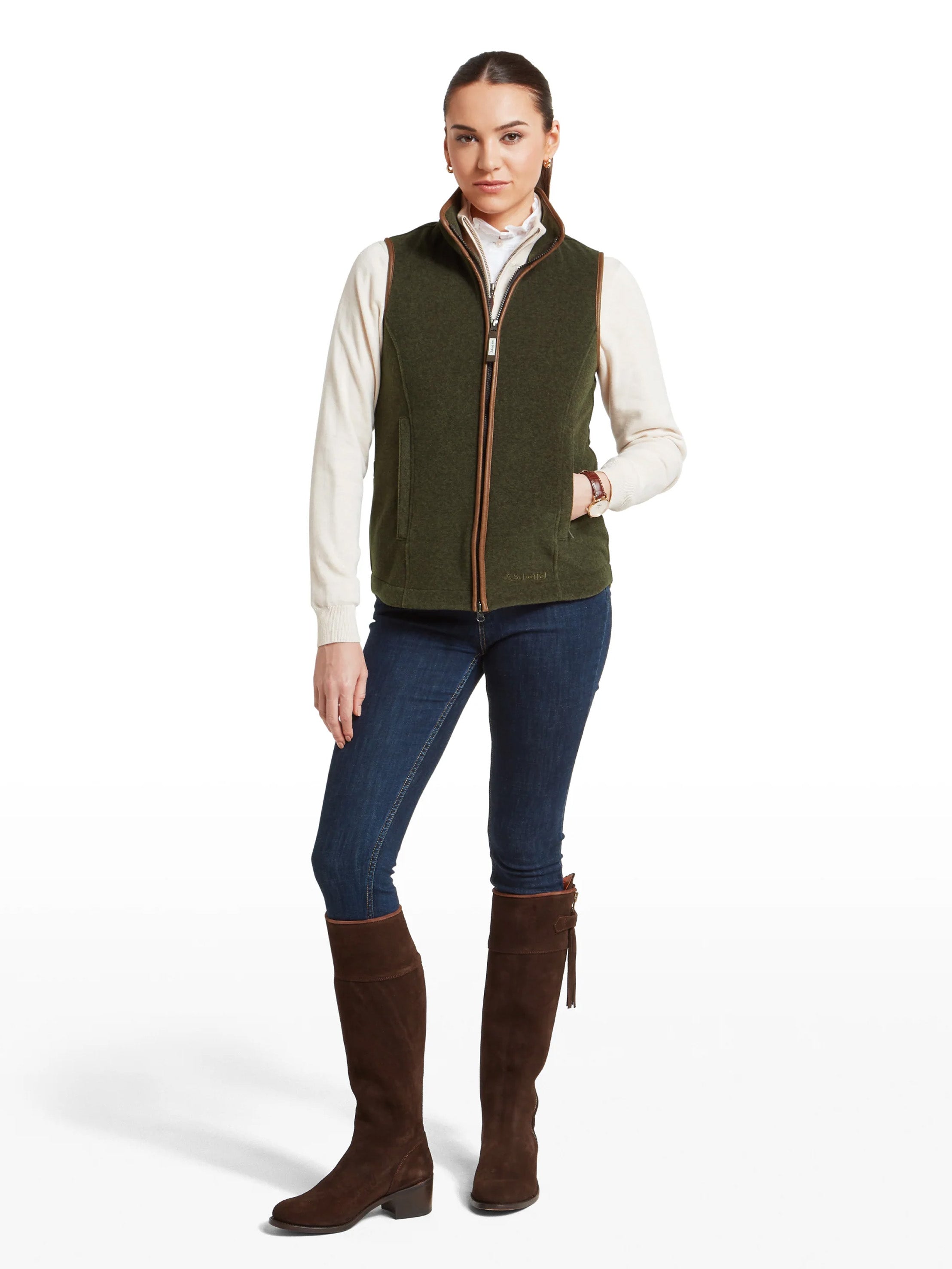 Designed in Britain and crafted from premium Italian-milled Pontetorto fleece, the Lyndon gilet is a true Sch?ffel classic. Renowned for its warmth, breathability, and durability, it features a flattering fit with an adjustable drawcord at the waist and a full-zip front. Finished with signature Sch?ffel details, this versatile gilet pairs effortlessly with shirts, knitwear, or outerwear, making it an essential layer for year-round country style.