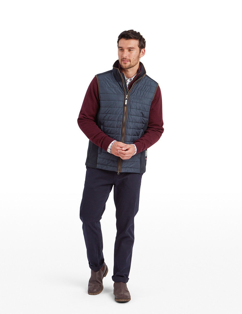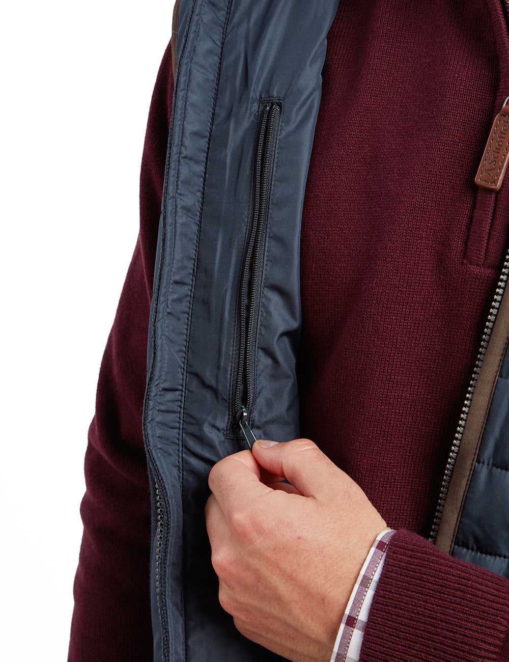 The Schoffel Oakham Hybrid Gilet is a premium upgrade of the beloved Oakham Fleece Gilet. Its baffled front panels and knitted fleece back provide superior warmth and comfort, while its two-way YKK front zip, adjustable draw cord hem and two zip security pockets combine functionality and style.