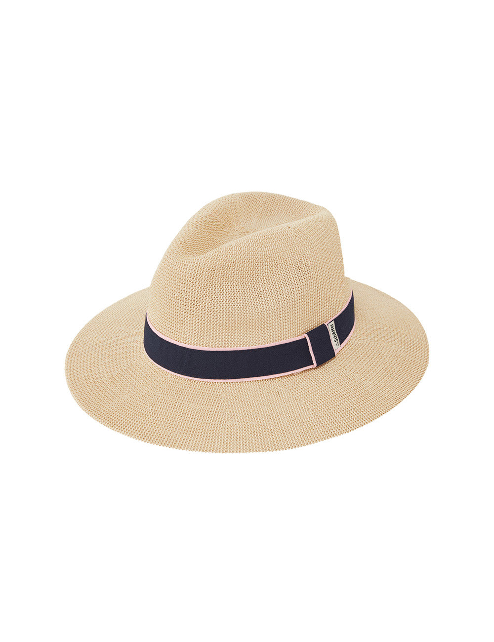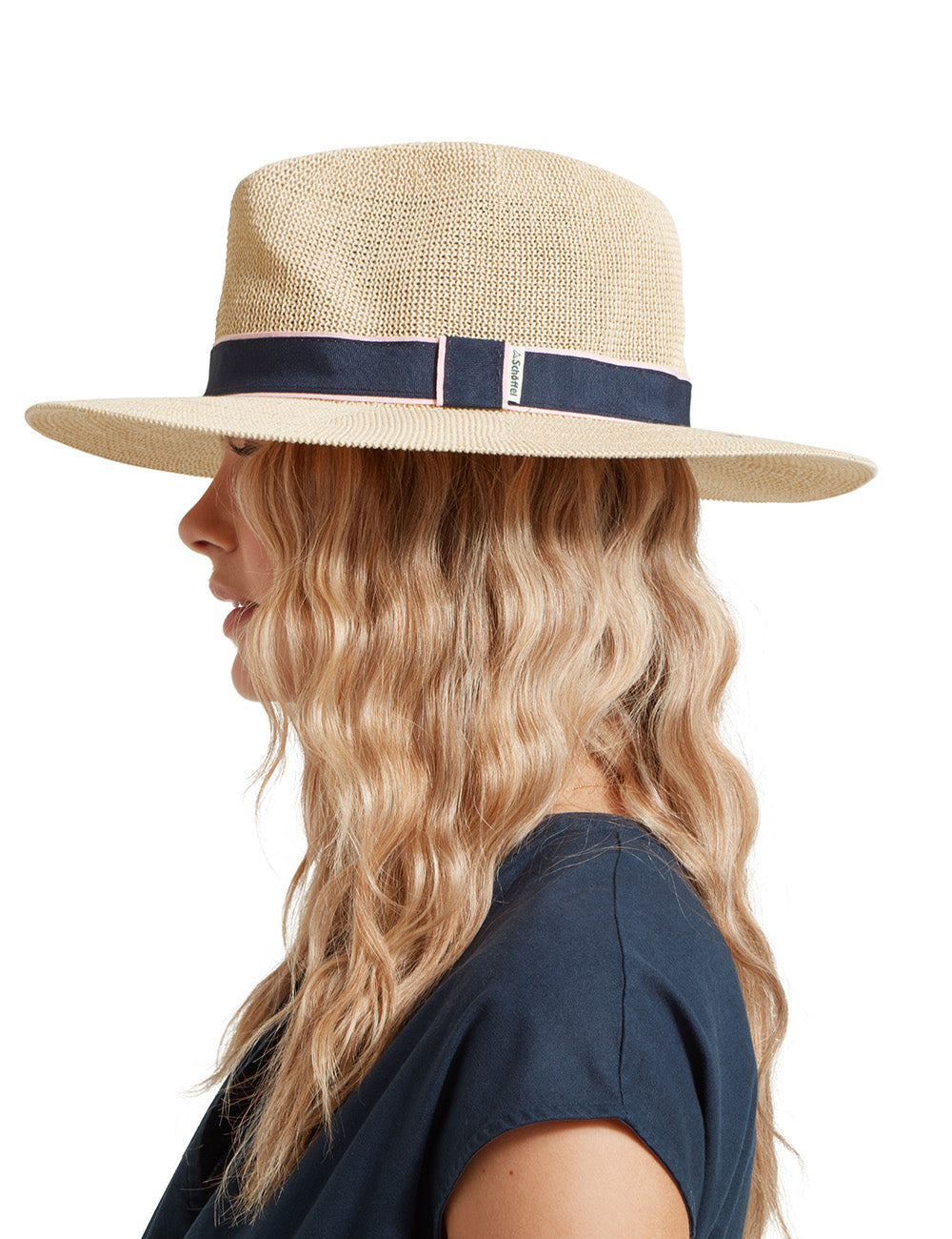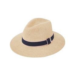 This timeless straw Panama-style hat features a stylish two-tone ribbon and an internal adjuster for the perfect fit. The ideal accessory for any outfit, this hat exudes undeniable charm and sophistication.