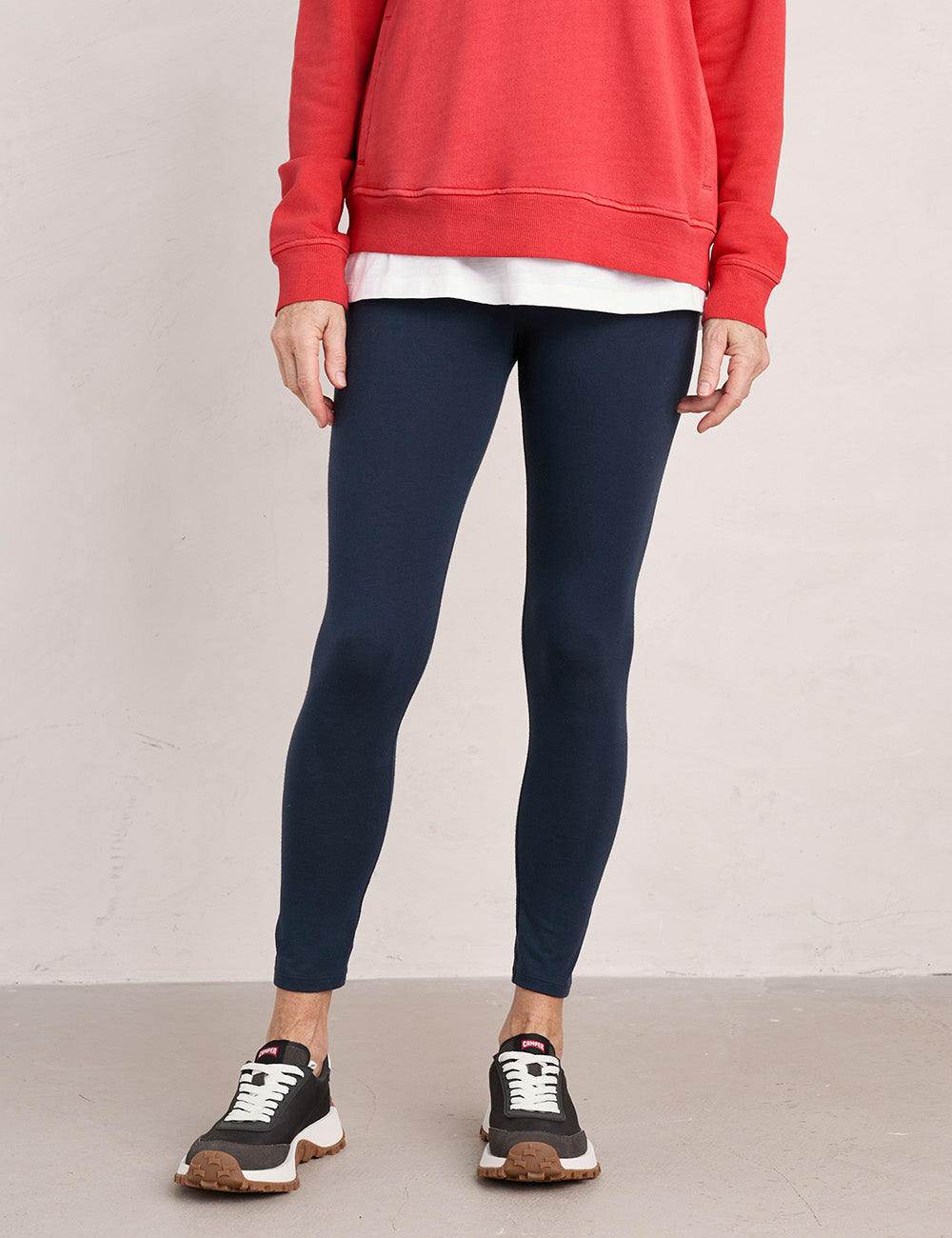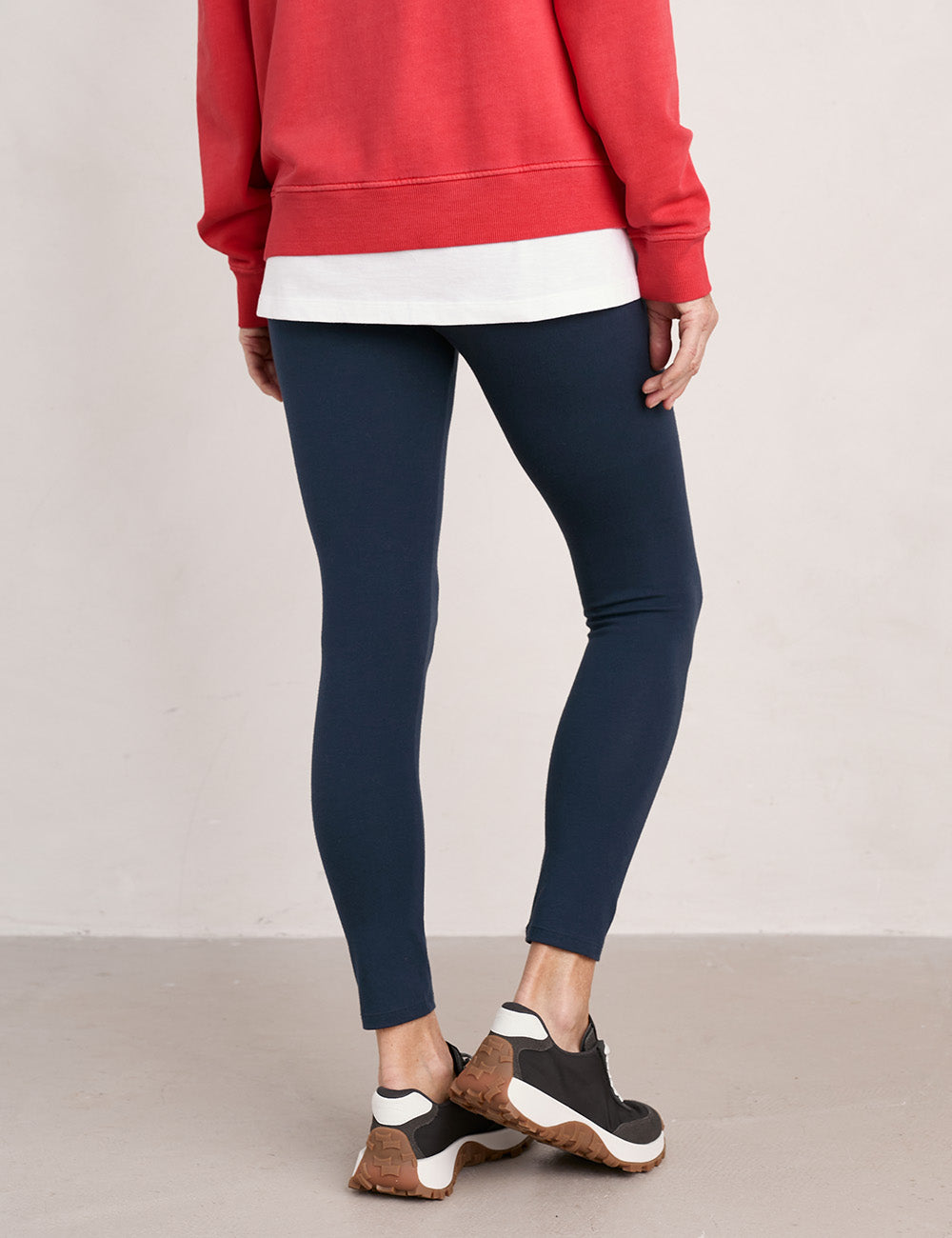 Made with organic cotton jersey, these leggings offer great coverage and a deep, comfortable elasticated waistband. Perfect for relaxing or gentle movement, and pairs beautifully with your go-to longline sweatshirt.