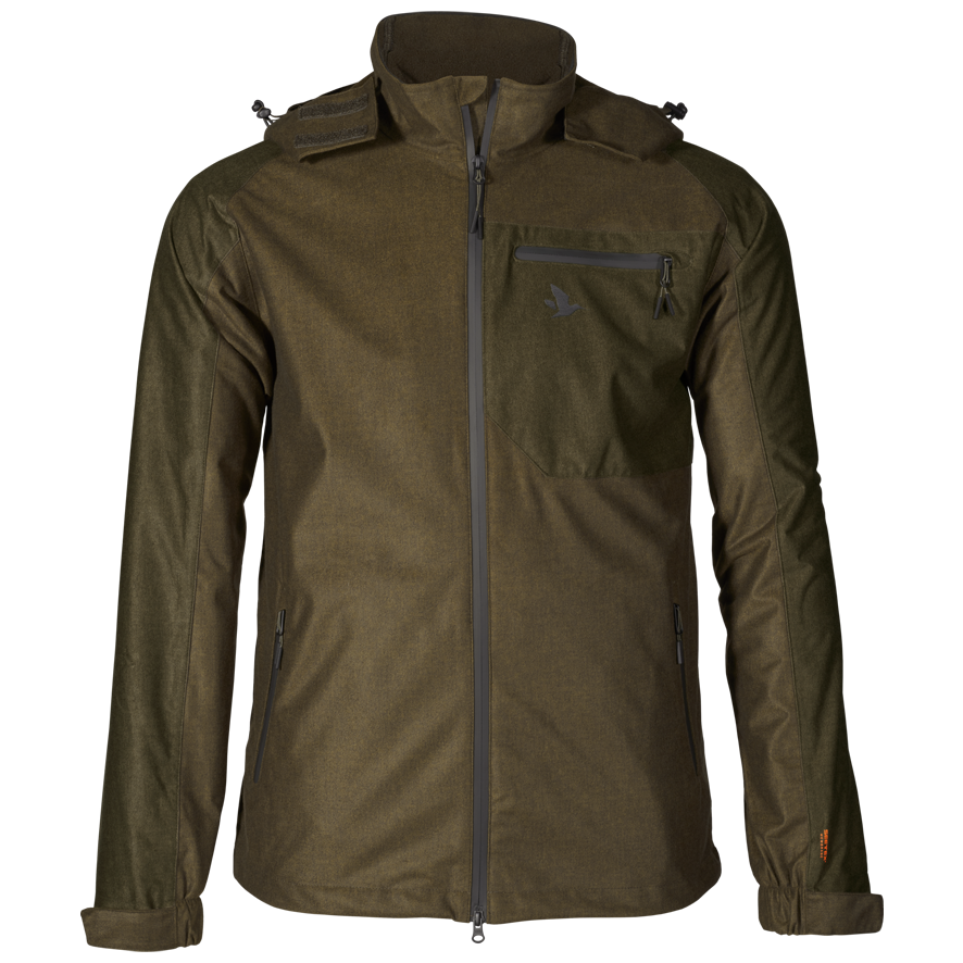The concealing dark green color of the Avail jacket’s low-noise, brushed tricot fabric allows it to blend in with most hunting environments. With a water column pressure of 10,000/10,000 mm, the jacket’s two-layer windproof and waterproof SEETEX? membrane will keep you dry.The jacket has waterproof zips in two large front pockets and one on the left chest for a radio.For your mobile phone or other similar devices that you do not want to get in the way, there is an inside pocket with a press stud closure.