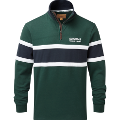 As versatile as it is stylish, this quarter zip piece is a must-have for all seasons. Made with a durable heavyweight peached jersey fabric, this sweatshirt features bold stripes, classic country colours and Sch?ffel Countrywear embroidery. Its timeless design and superior quality make it a versatile and long-lasting addition to any wardrobe.