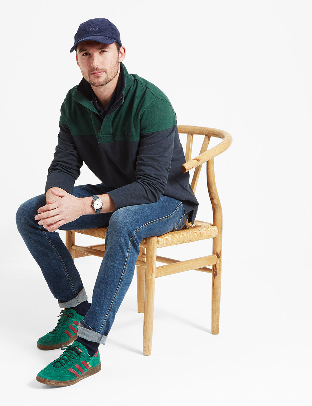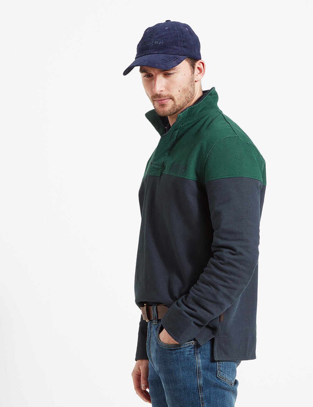 Schoffel Helford Heritage Sweatshirt – Navy/Pine Green Size Small